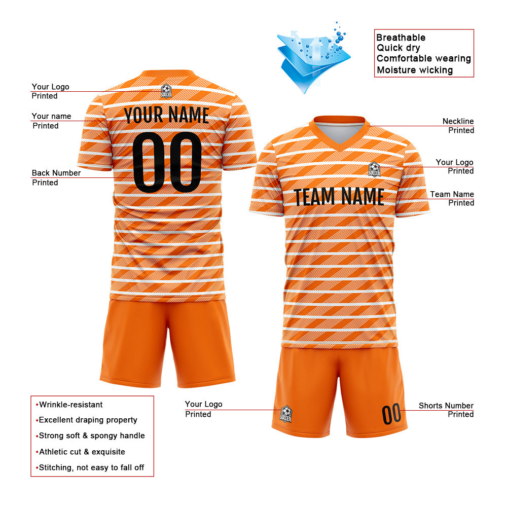Benutzerdefinierte Fußball Trikots für Männer Frauen Personalisierte Fußball Uniformen für Erwachsene und Kind Orange