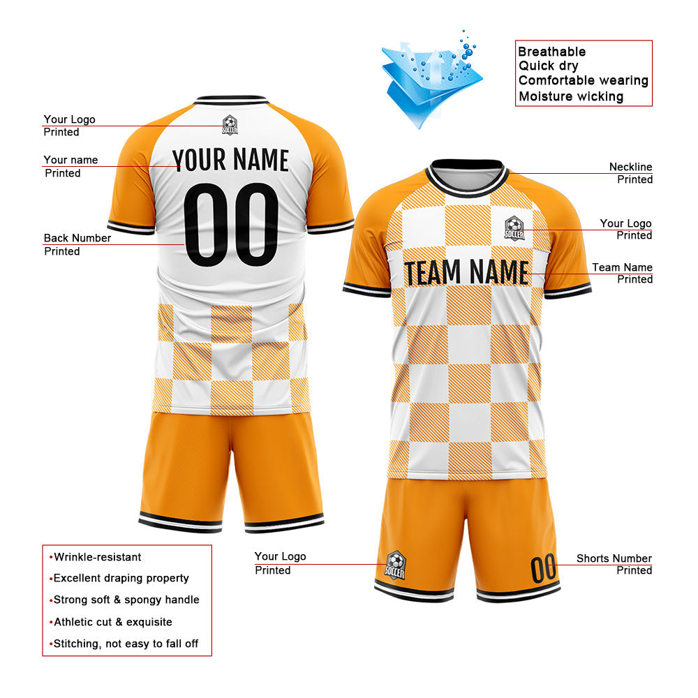 Benutzerdefinierte Fußball Trikots für Männer Frauen Personalisierte Fußball Uniformen für Erwachsene und Kind Orange-Weiß