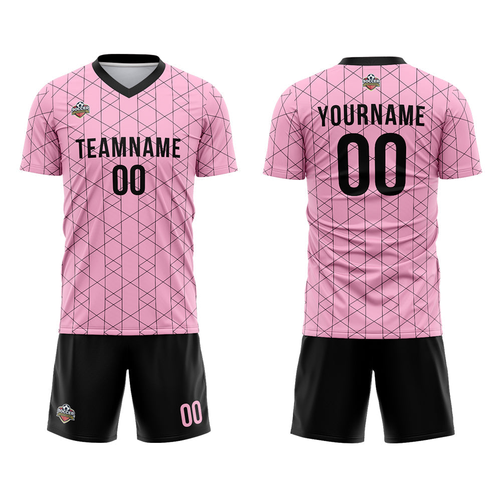 Benutzerdefinierte Fußball Trikots für Männer Frauen Personalisierte Fußball Uniformen für Erwachsene und Kind Rosa-Schwarz