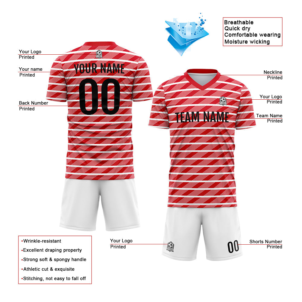 Benutzerdefinierte Fußball Trikots für Männer Frauen Personalisierte Fußball Uniformen für Erwachsene und Kind Rot