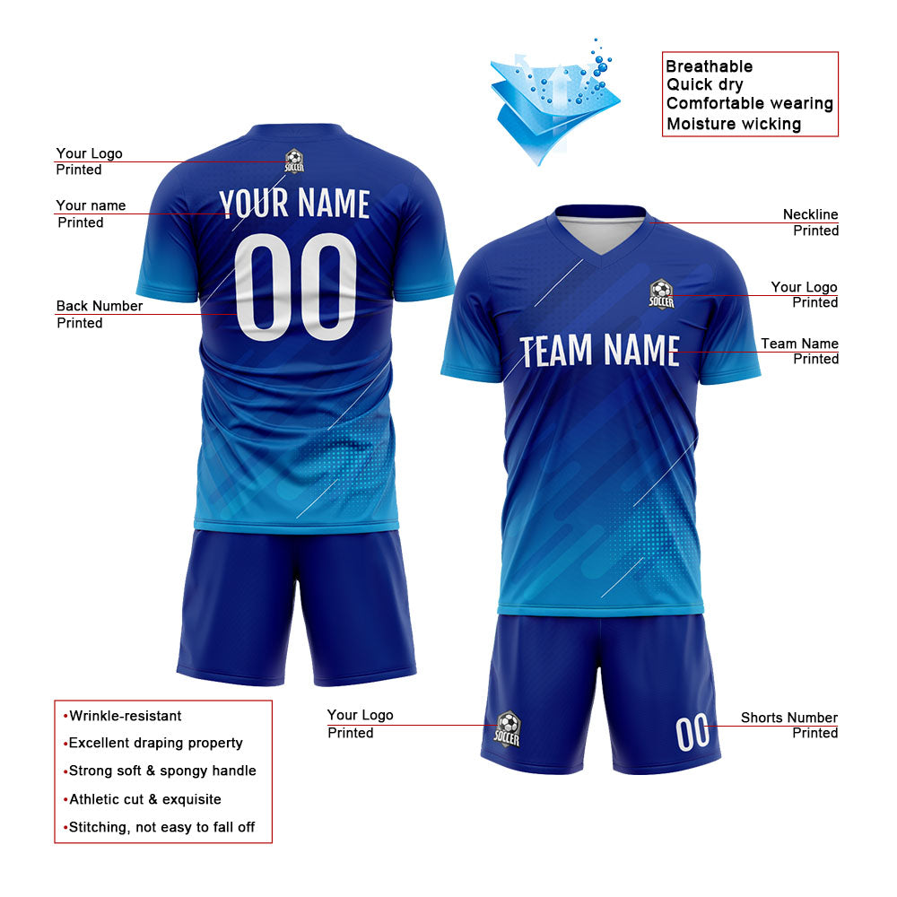 Benutzerdefinierte Fußball Trikots für Männer Frauen Personalisierte Fußball Uniformen für Erwachsene und Kind Royal