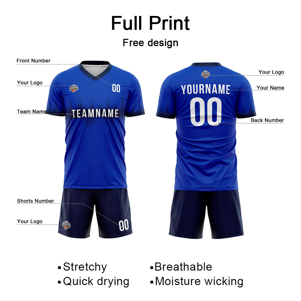Benutzerdefinierte Fußball Trikots für Männer Frauen Personalisierte Fußball Uniformen für Erwachsene und Kind Royal-Marine