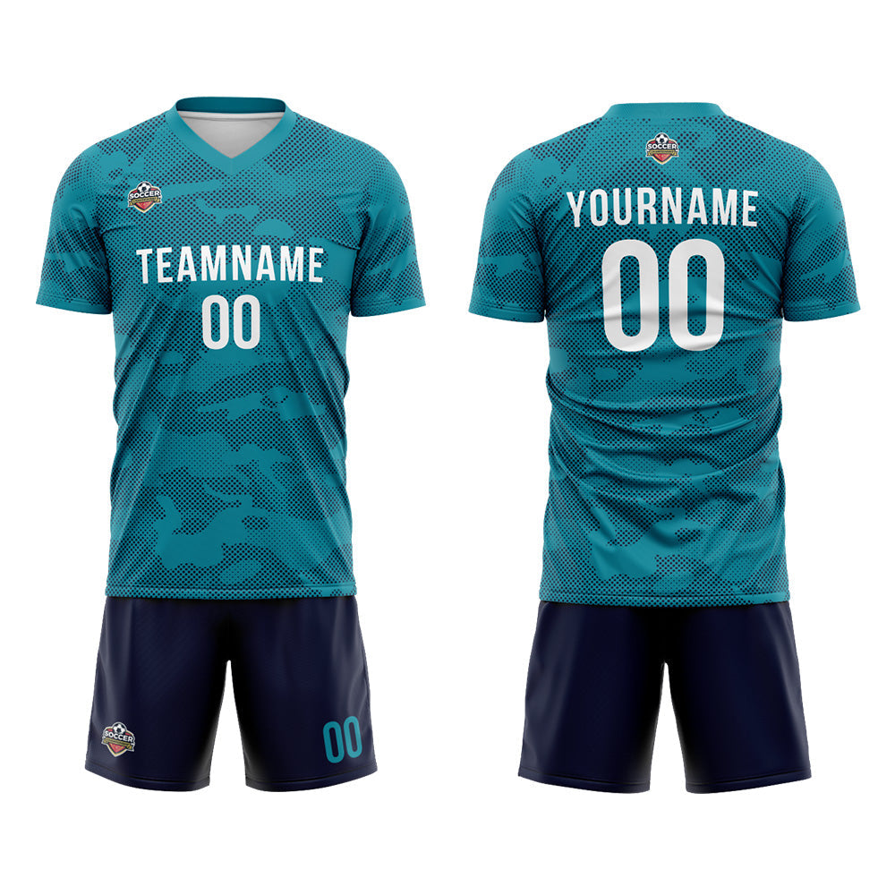 Benutzerdefinierte Fußball Trikots für Männer Frauen Personalisierte Fußball Uniformen für Erwachsene und Kind Teal-Marine