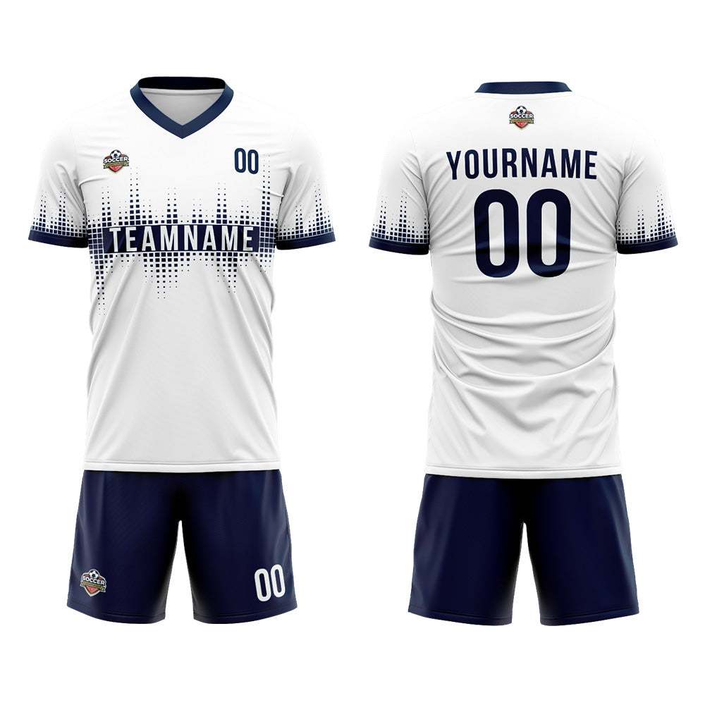 Benutzerdefinierte Fußball Trikots für Männer Frauen Personalisierte Fußball Uniformen für Erwachsene und Kind Weiß-Marine
