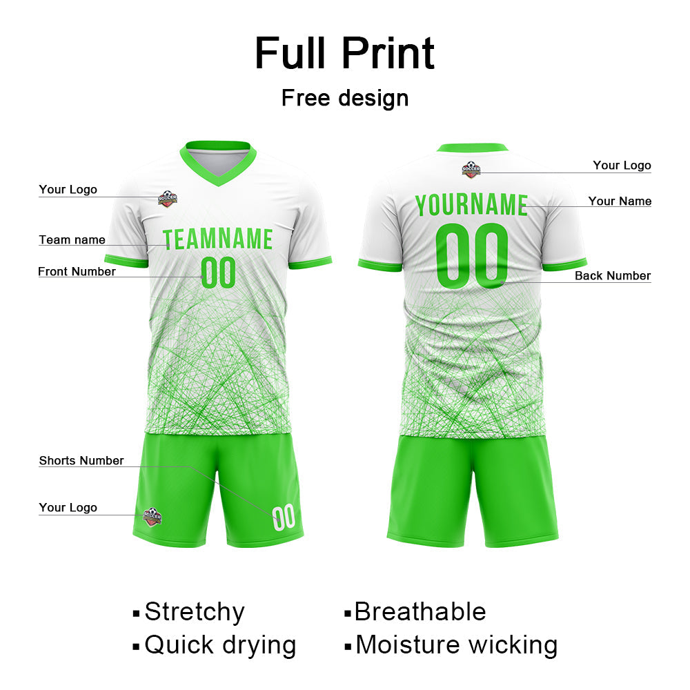 Benutzerdefinierte Fußball Trikots für Männer Frauen Personalisierte Fußball Uniformen für Erwachsene und Kind Weiß-Neon Grün