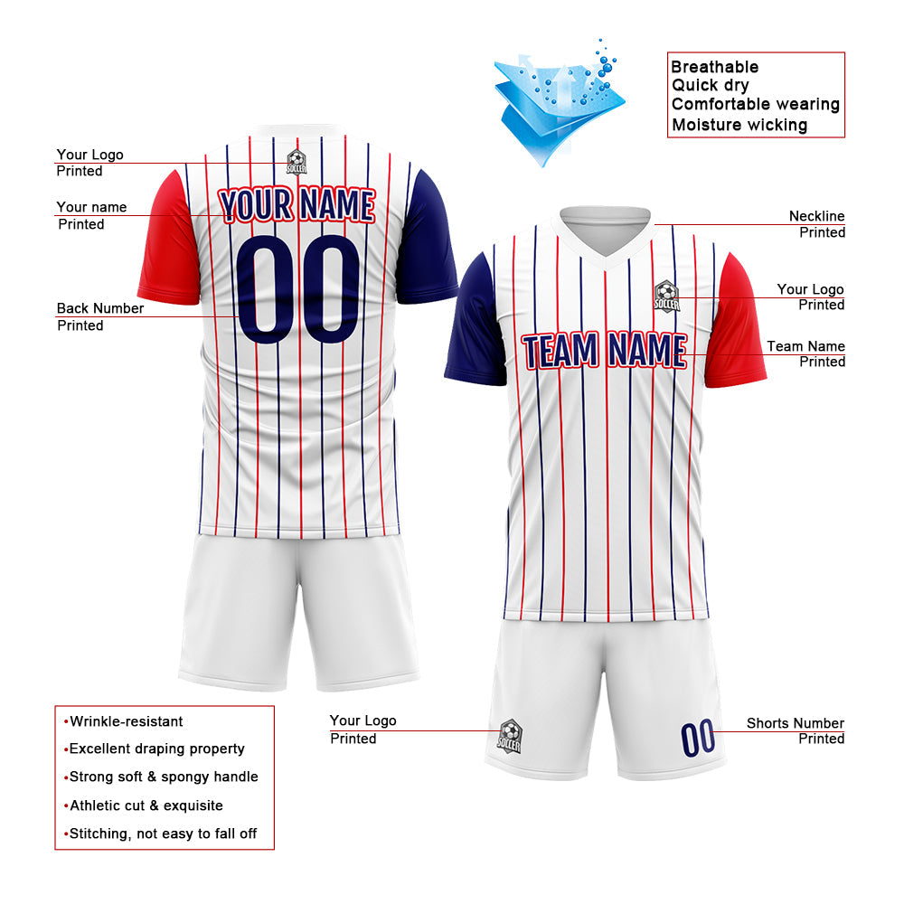 Benutzerdefinierte Fußball Trikots für Männer Frauen Personalisierte Fußball Uniformen für Erwachsene und Kind Weiß-Rot-Marine