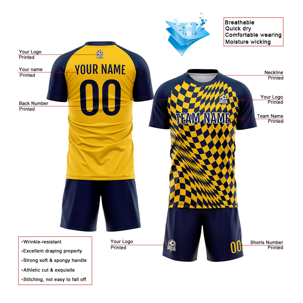 Benutzerdefinierte Fußball Trikots für Männer Frauen Personalisierte Fußball Uniformen für Erwachsene und Kind Gelb-Marine