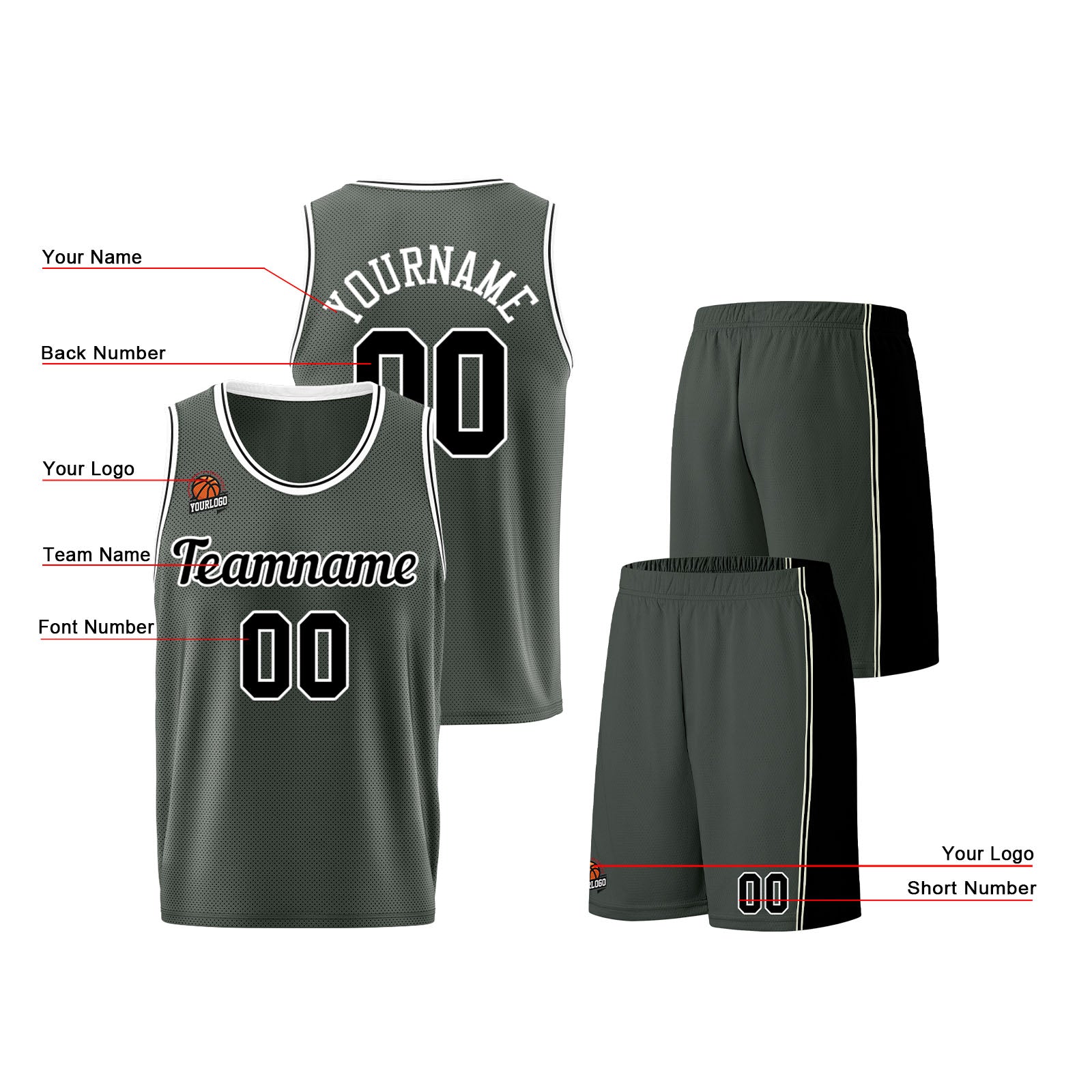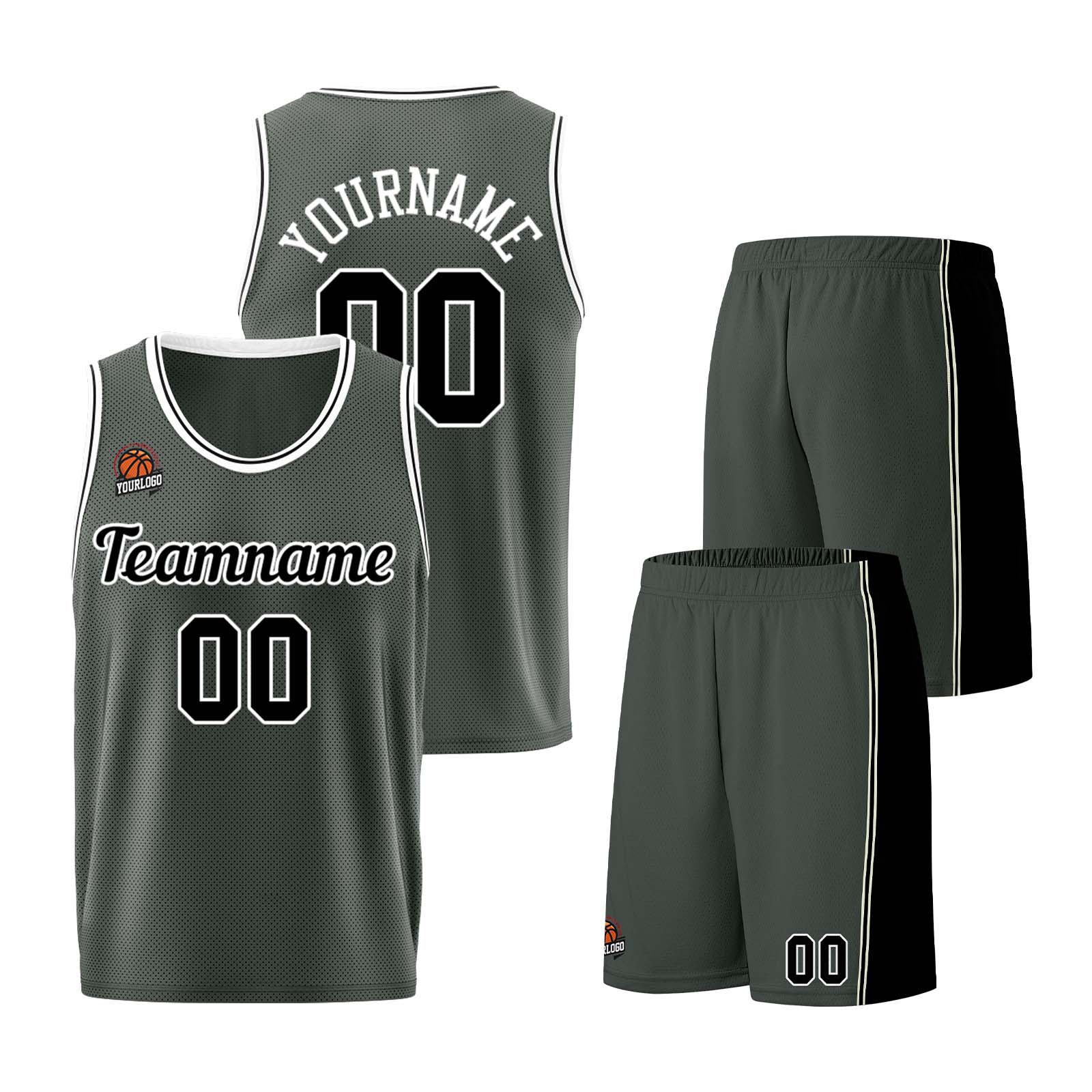 Individuelle Dunkelgrau-Schwarz Basketball Jersey Shorts für Männer und Frauen Gestickter und gedruckter Name, Nummer und Logo