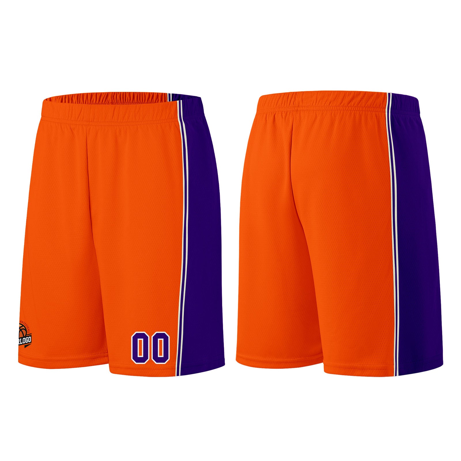 Individuelle Orange-Lila Basketball Jersey Shorts für Männer und Frauen Gestickter und gedruckter Name, Nummer und Logo