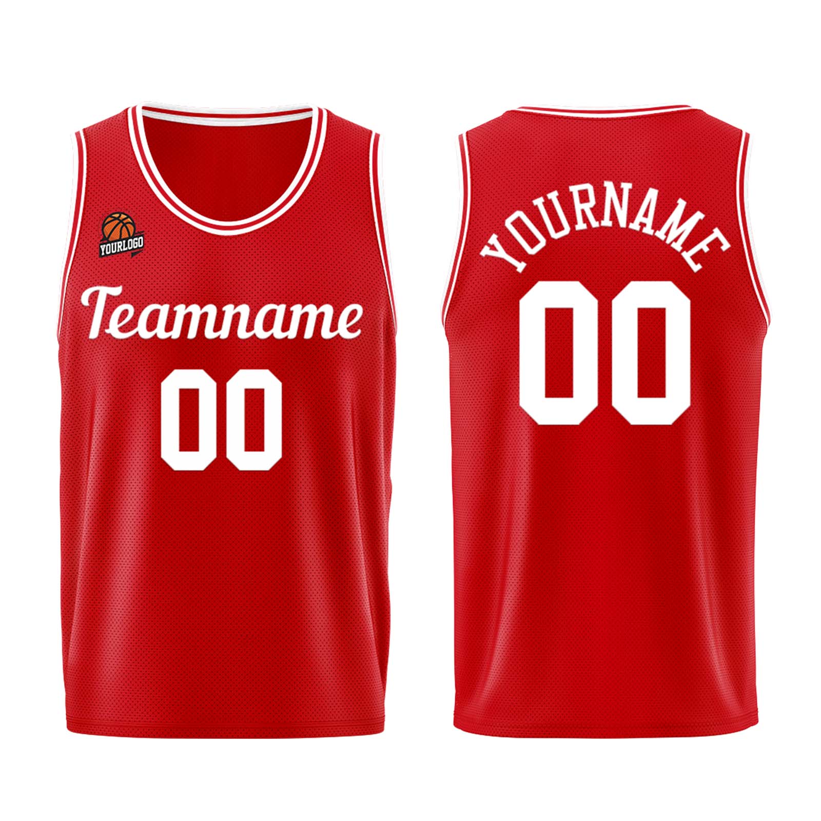 Individuelle Rot Weiß Basketball Jersey Shorts für Männer und Frauen Gestickter und gedruckter Name, Nummer und Logo