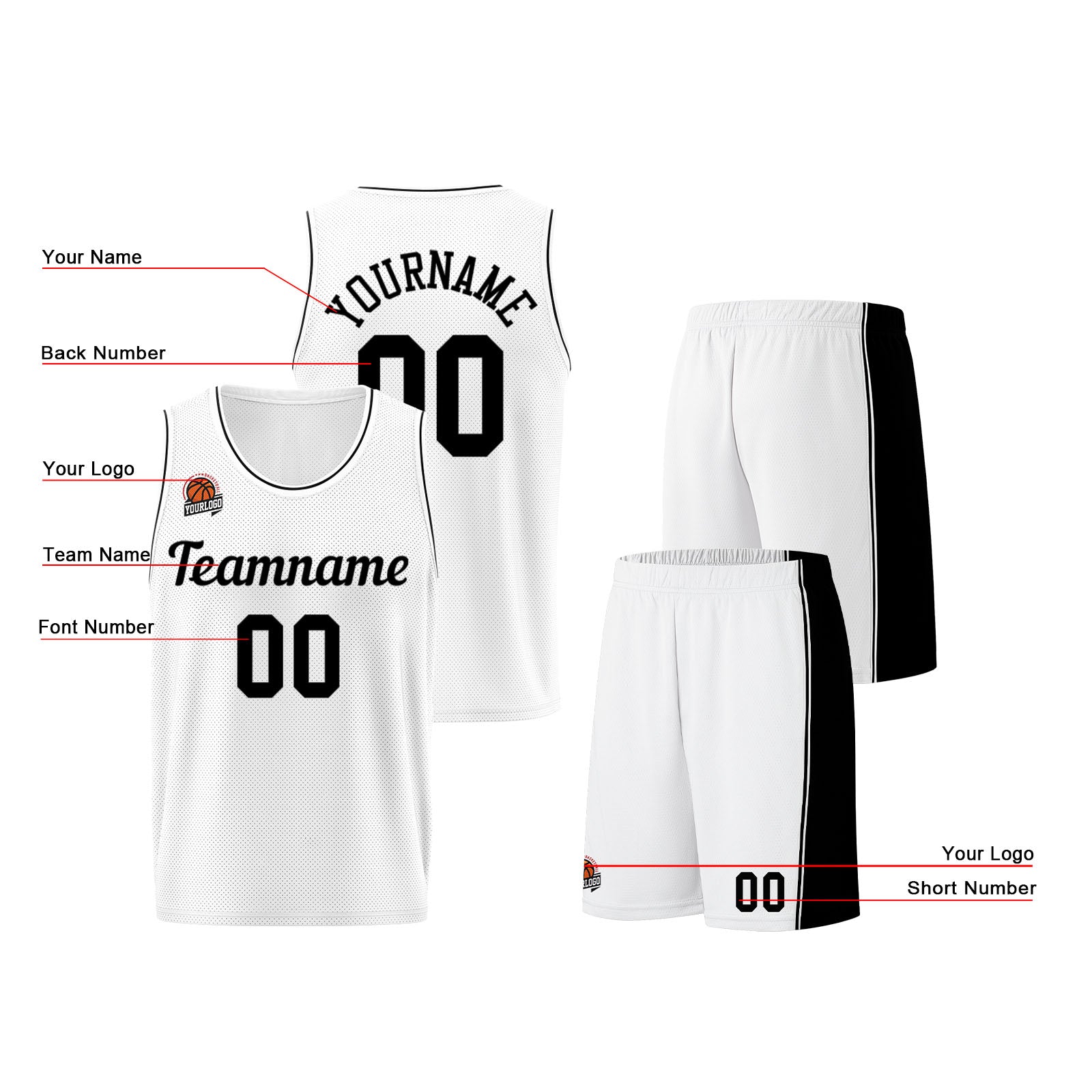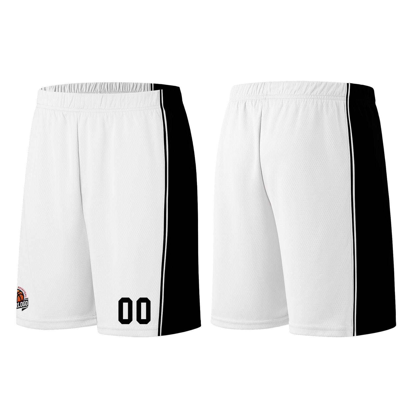 Individuelle Weiß-Schwarz Basketball Jersey Shorts für Männer und Frauen Gestickter und gedruckter Name, Nummer und Logo