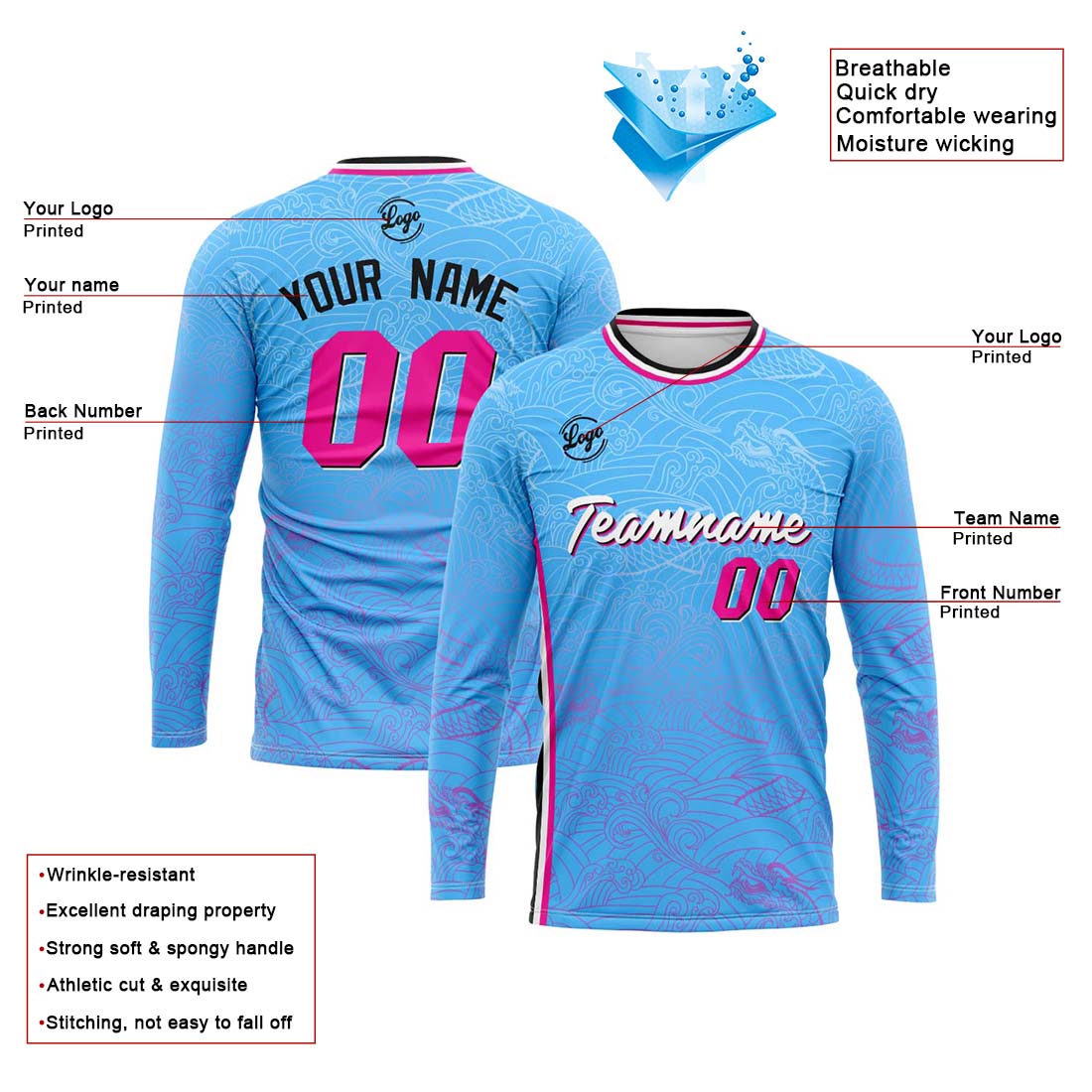 Kundenspezifisches Basketball Fußball Schießen langes T-Shirt für Erwachsene und Kinder Hellblau
