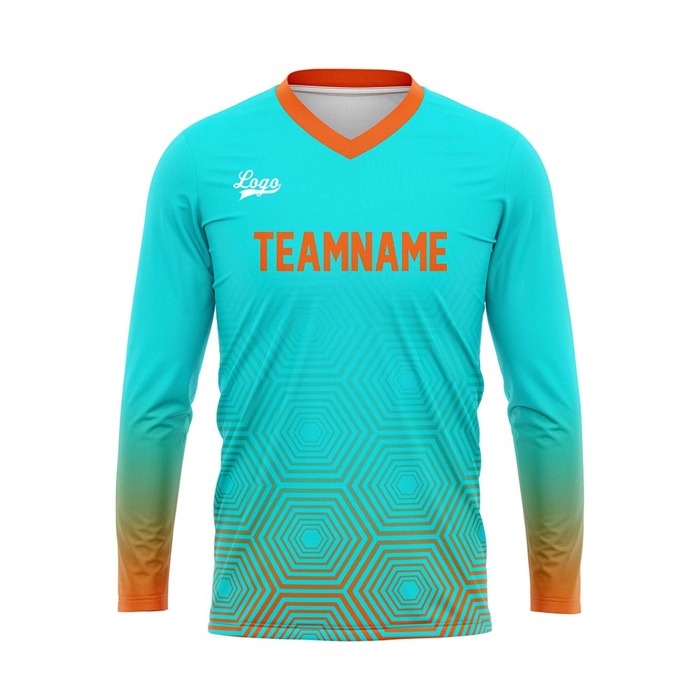 Kundenspezifisches Cyan Orange Basketball Fußball Schießen langes T-Shirt für Erwachsene und Kinder