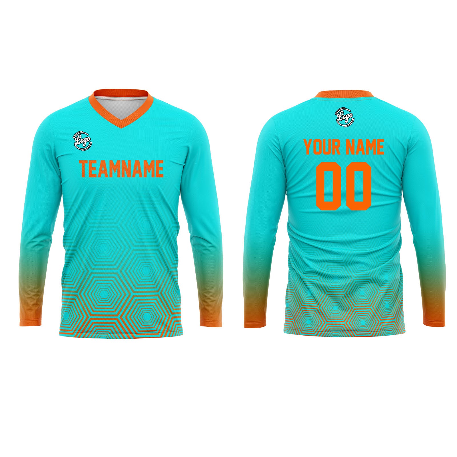 Kundenspezifisches Cyan Orange Basketball Fußball Schießen langes T-Shirt für Erwachsene und Kinder
