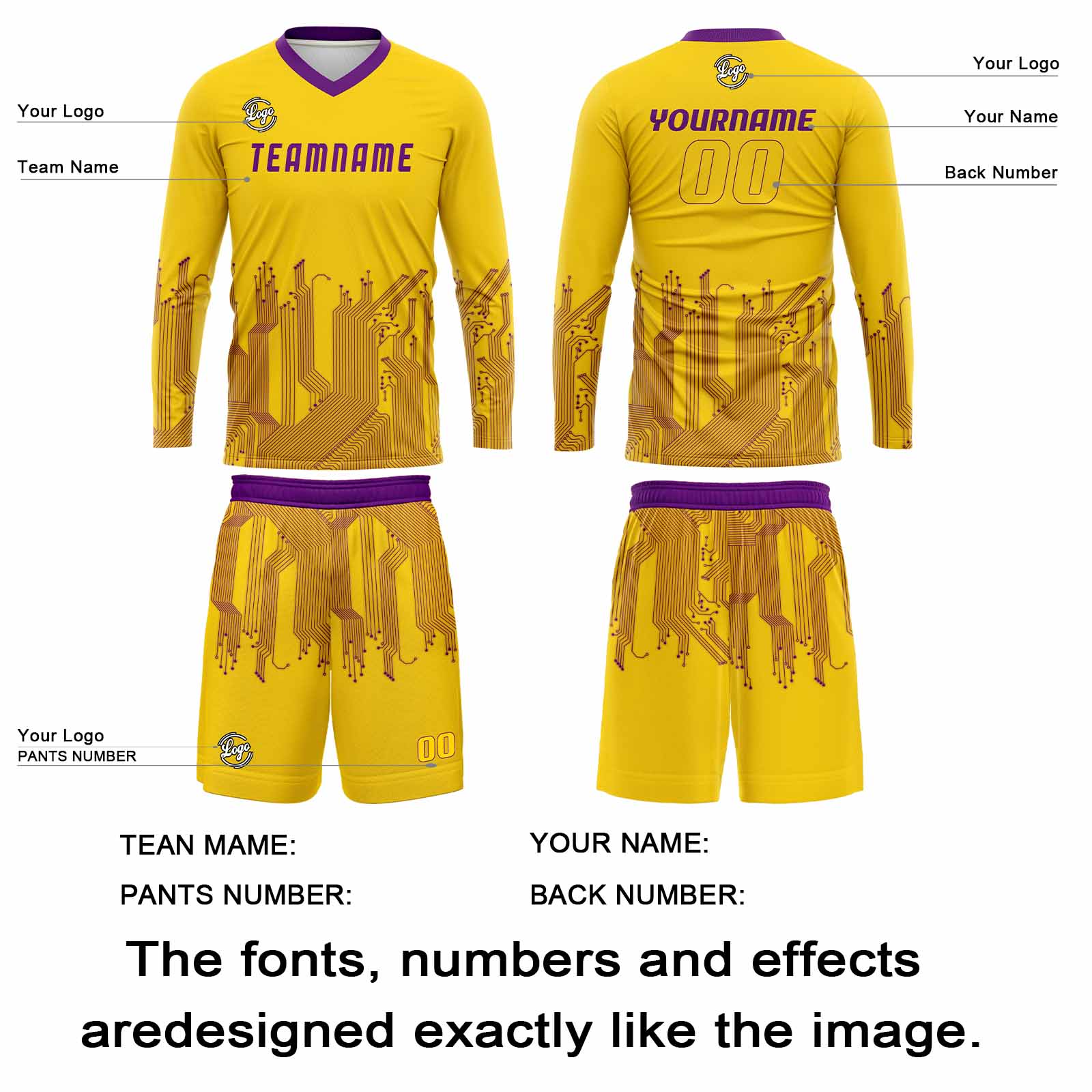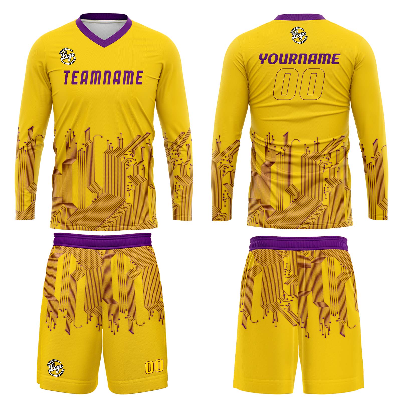 Kundenspezifisches Gelb Lila Basketball Fußball Schießen langes T-Shirt für Erwachsene und Kinder