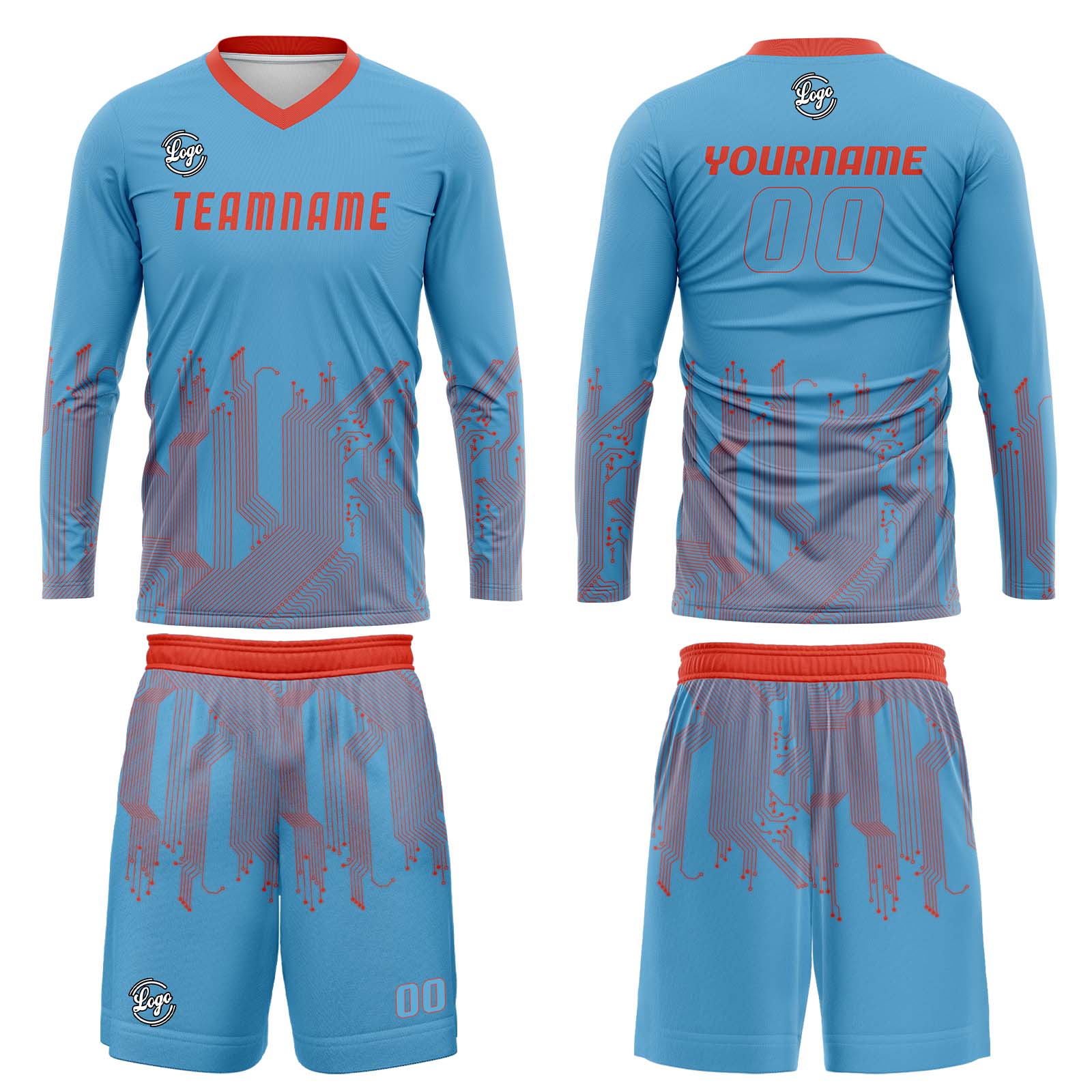 Kundenspezifisches Himmelblau Orange Rot Basketball Fußball Schießen langes T-Shirt für Erwachsene und Kinder