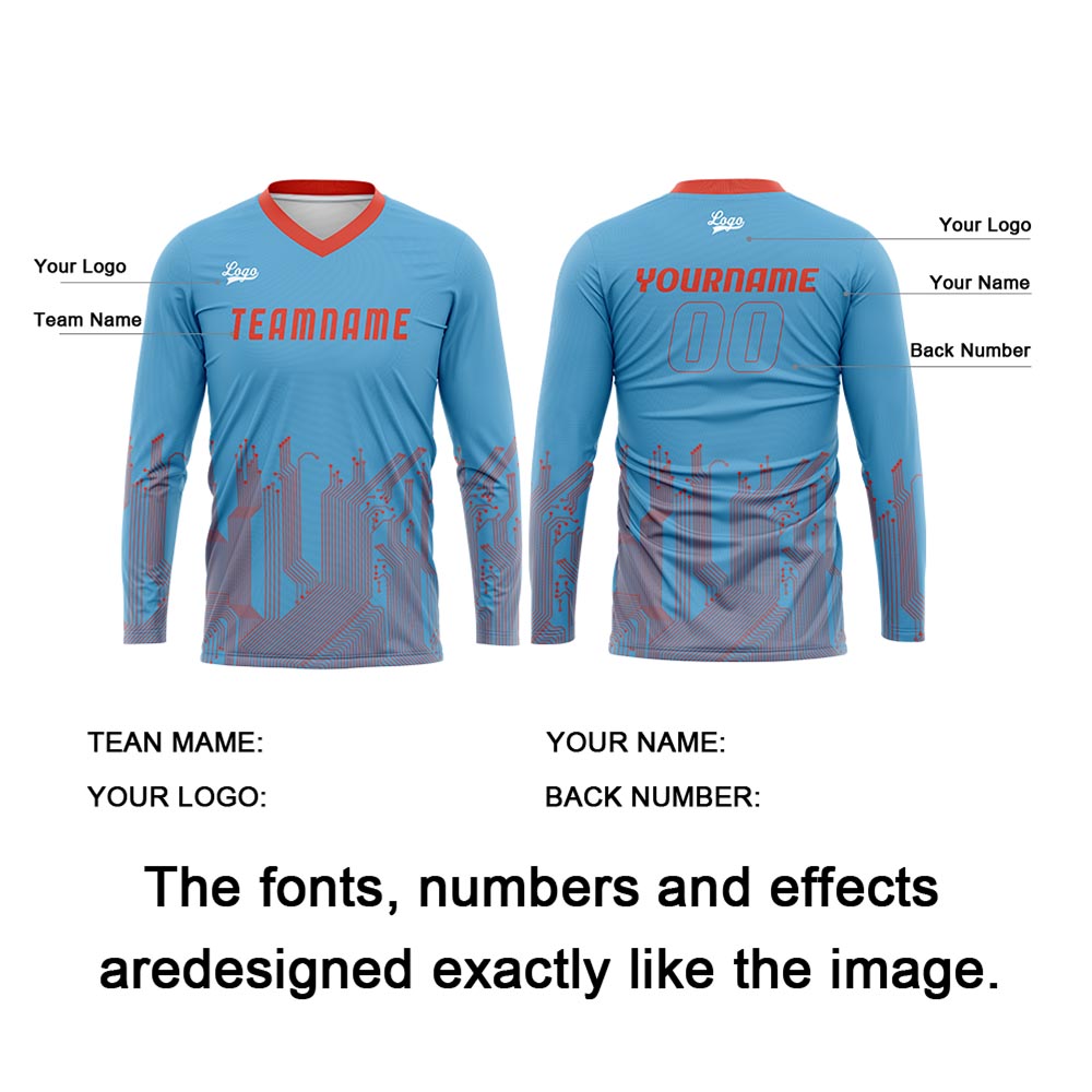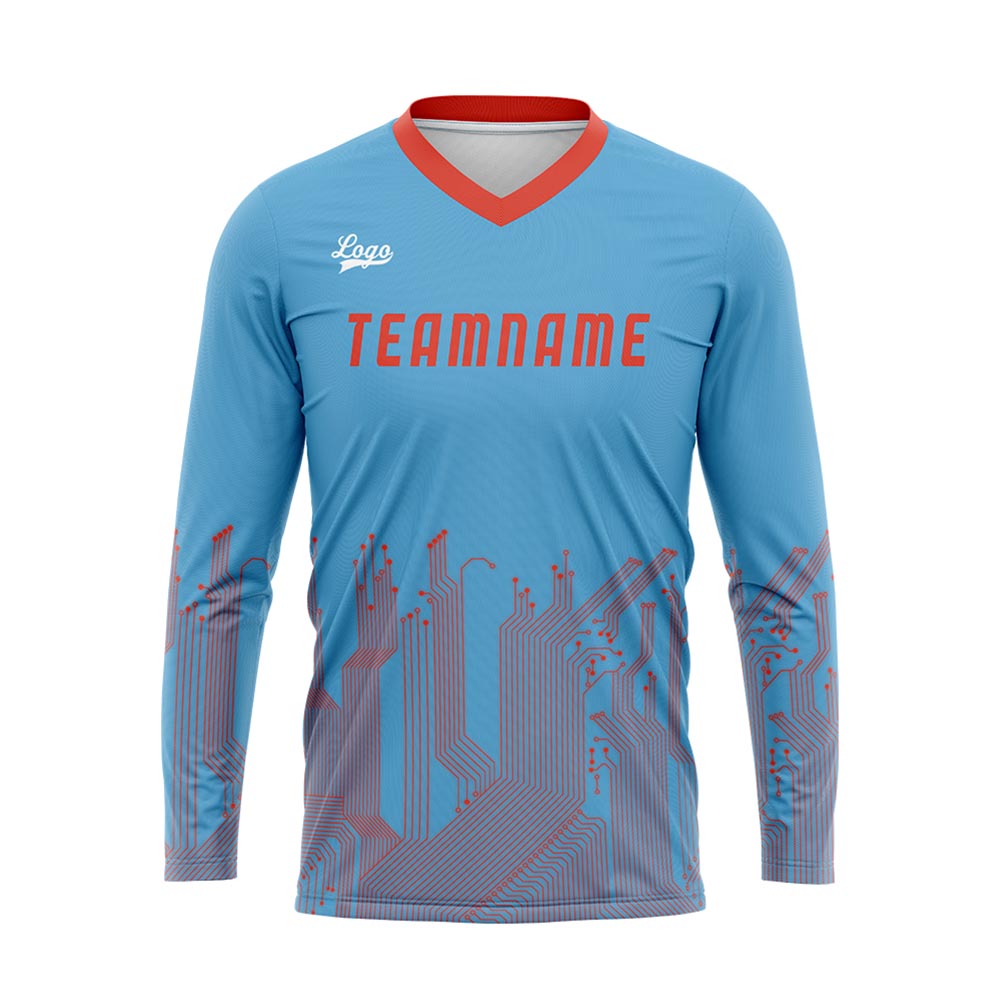 Kundenspezifisches Himmelblau Orange Rot Dunkelblau Basketball Fußball Schießen langes T-Shirt für Erwachsene und Kinder