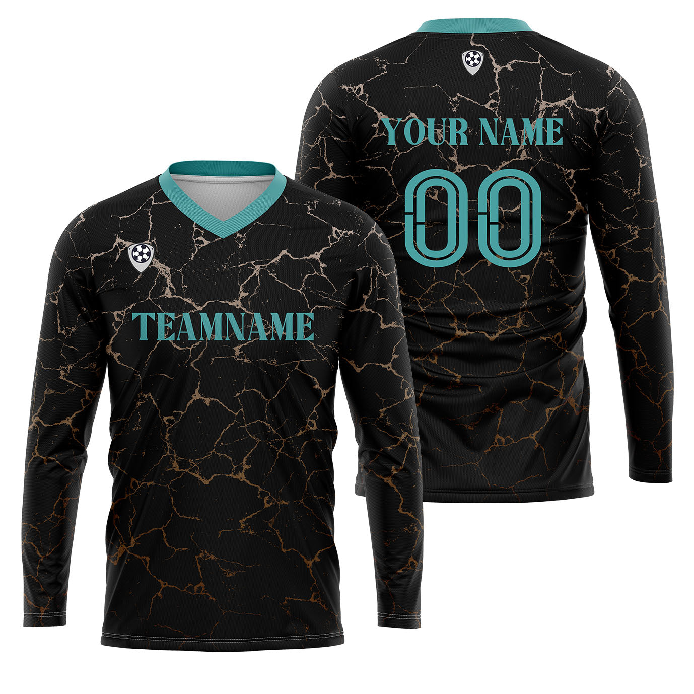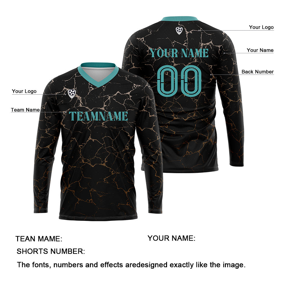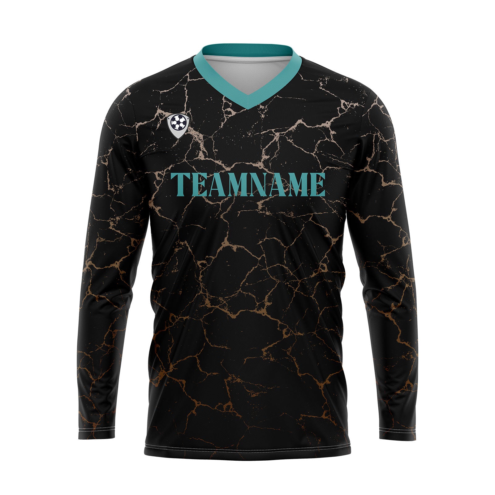 Kundenspezifisches Schwarz Teal Basketball Fußball Schießen langes T-Shirt für Erwachsene und Kinder