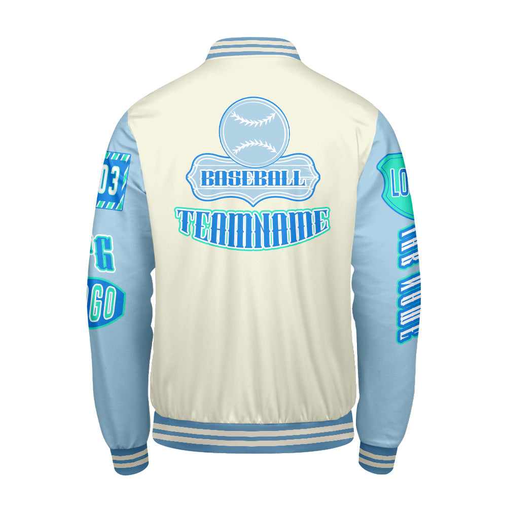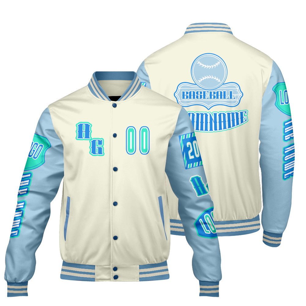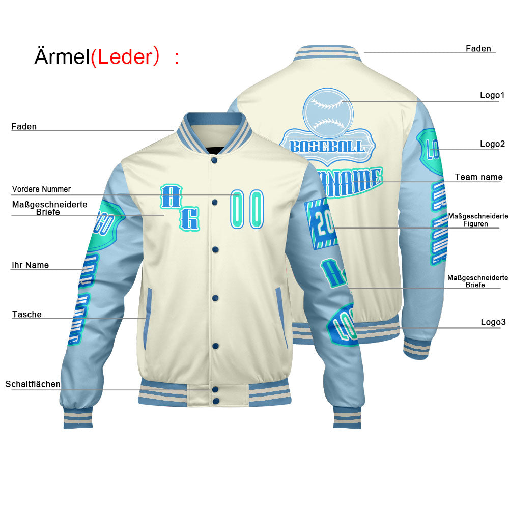 Maßgeschneiderte Blau Grün Letterman Varsity Jacket Individuelle Stickerei  Druck nach Ihrem Wunsch