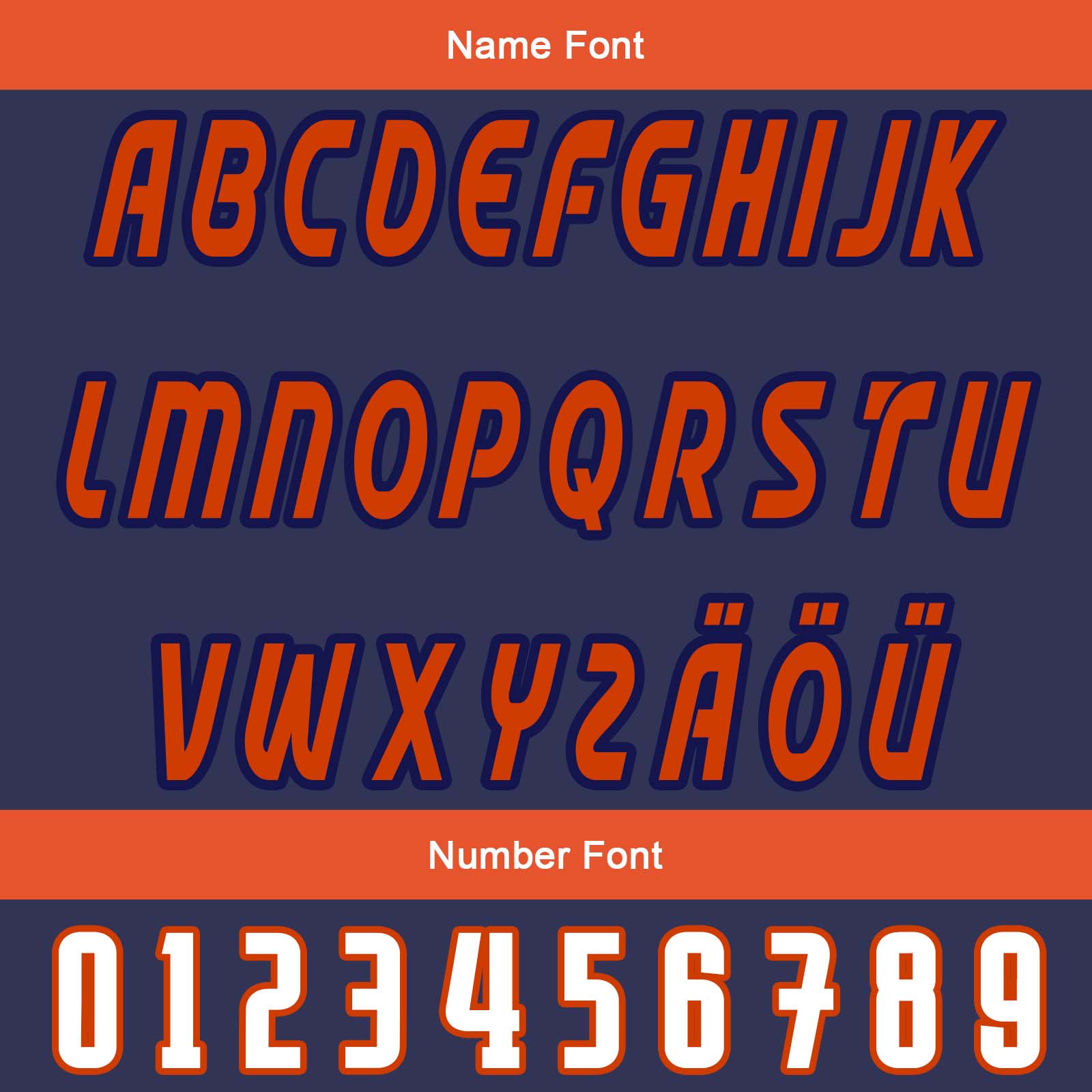 Maßgeschneiderte Marine Orange Letterman Varsity Jacket Individuelle Stickerei  Druck nach Ihrem Wunsch