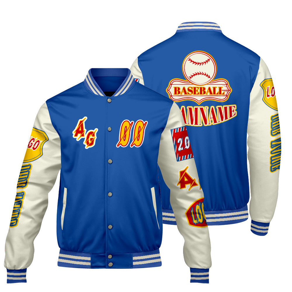 Maßgeschneiderte Blau Gelb Letterman Varsity Jacket Individuelle Stickerei  Druck nach Ihrem Wunsch