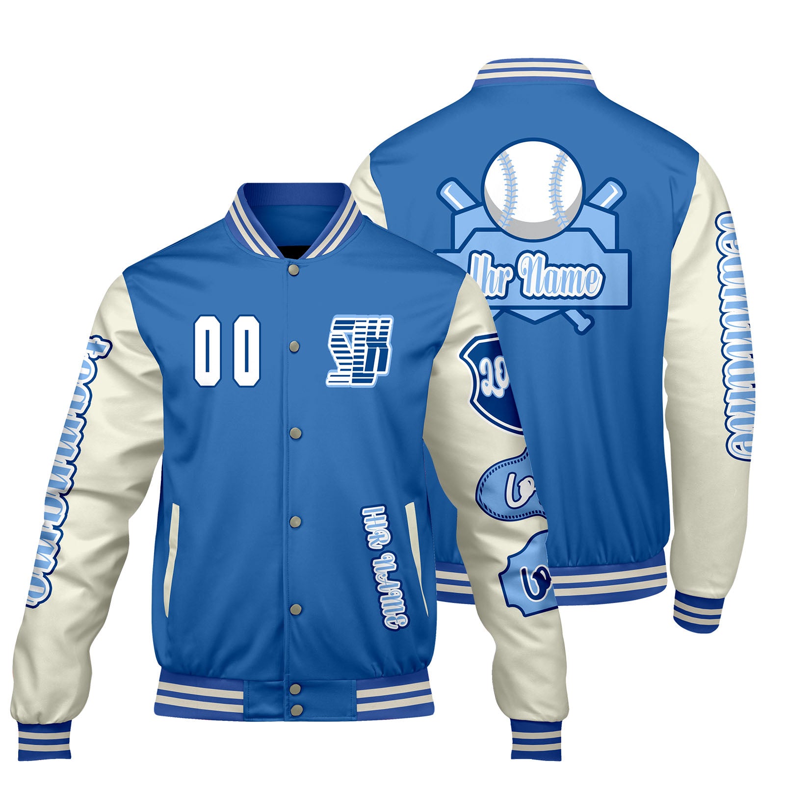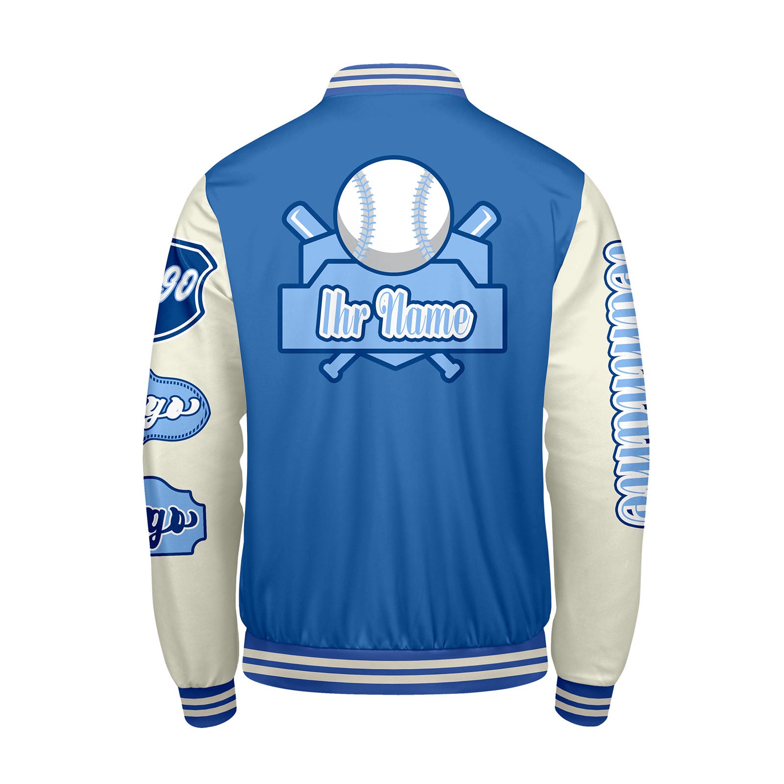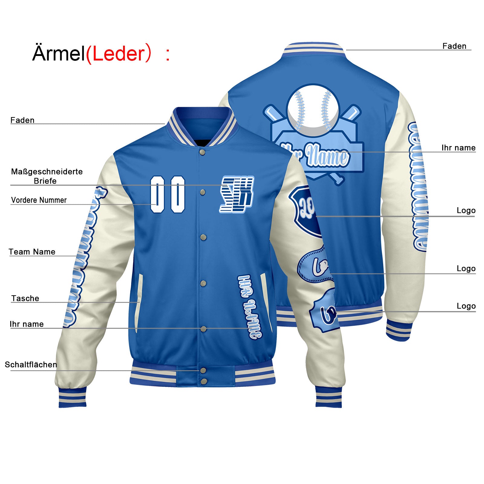 Maßgeschneiderte Blau Weiß Letterman Varsity Jacket Individuelle Stickerei  Druck nach Ihrem Wunsch