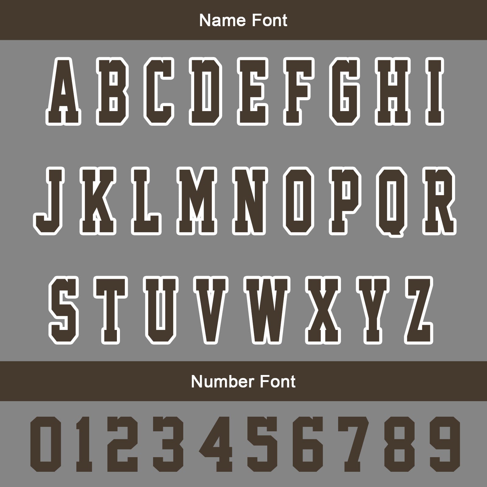 Maßgeschneiderte Braun Grau Letterman Varsity Jacket Individuelle Stickerei Druck nach Ihrem Wunsch