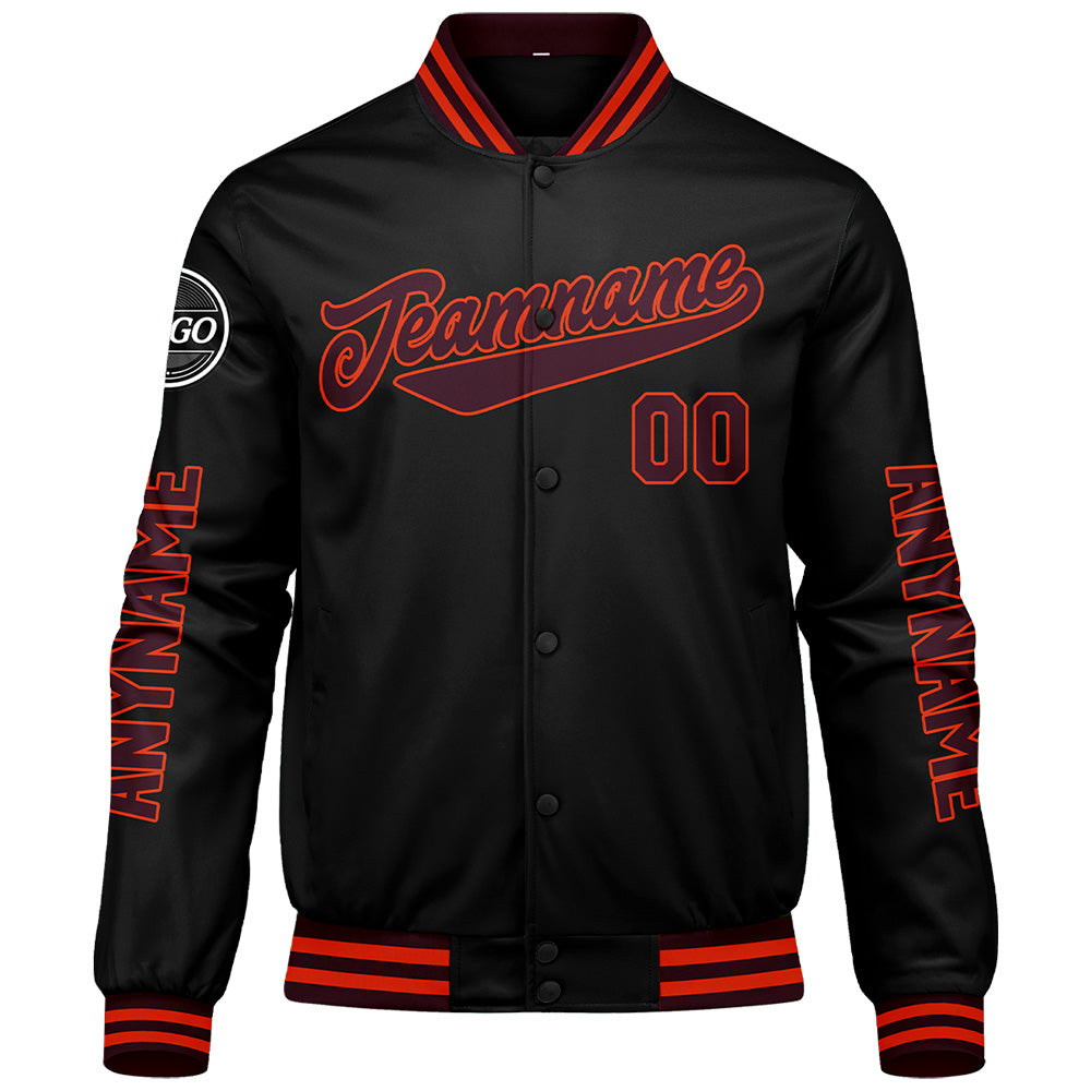 Maßgeschneiderte Braun Schwarz Orange Letterman Varsity Jacket Individuelle Stickerei Druck nach Ihrem Wunsch
