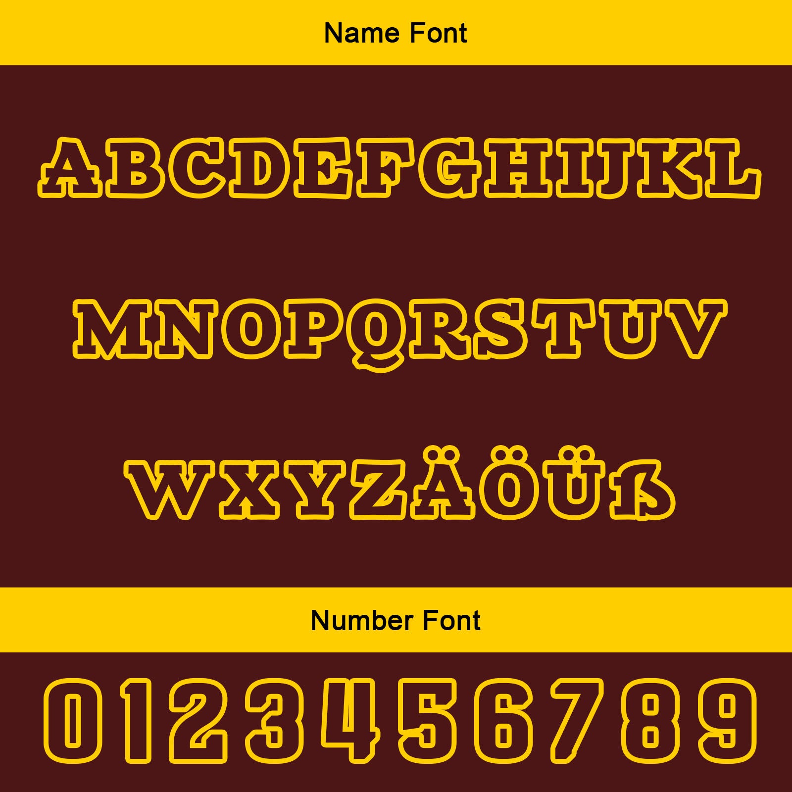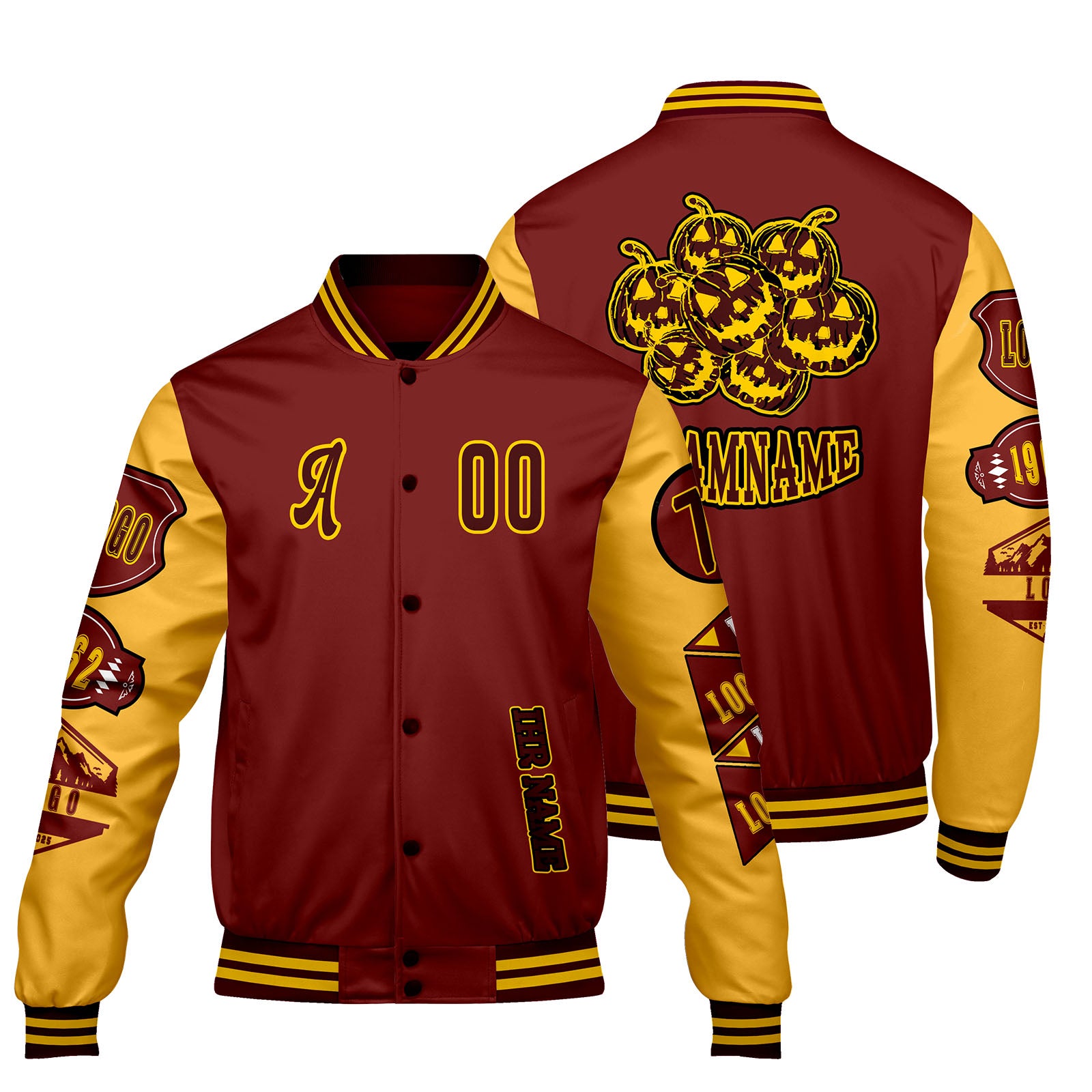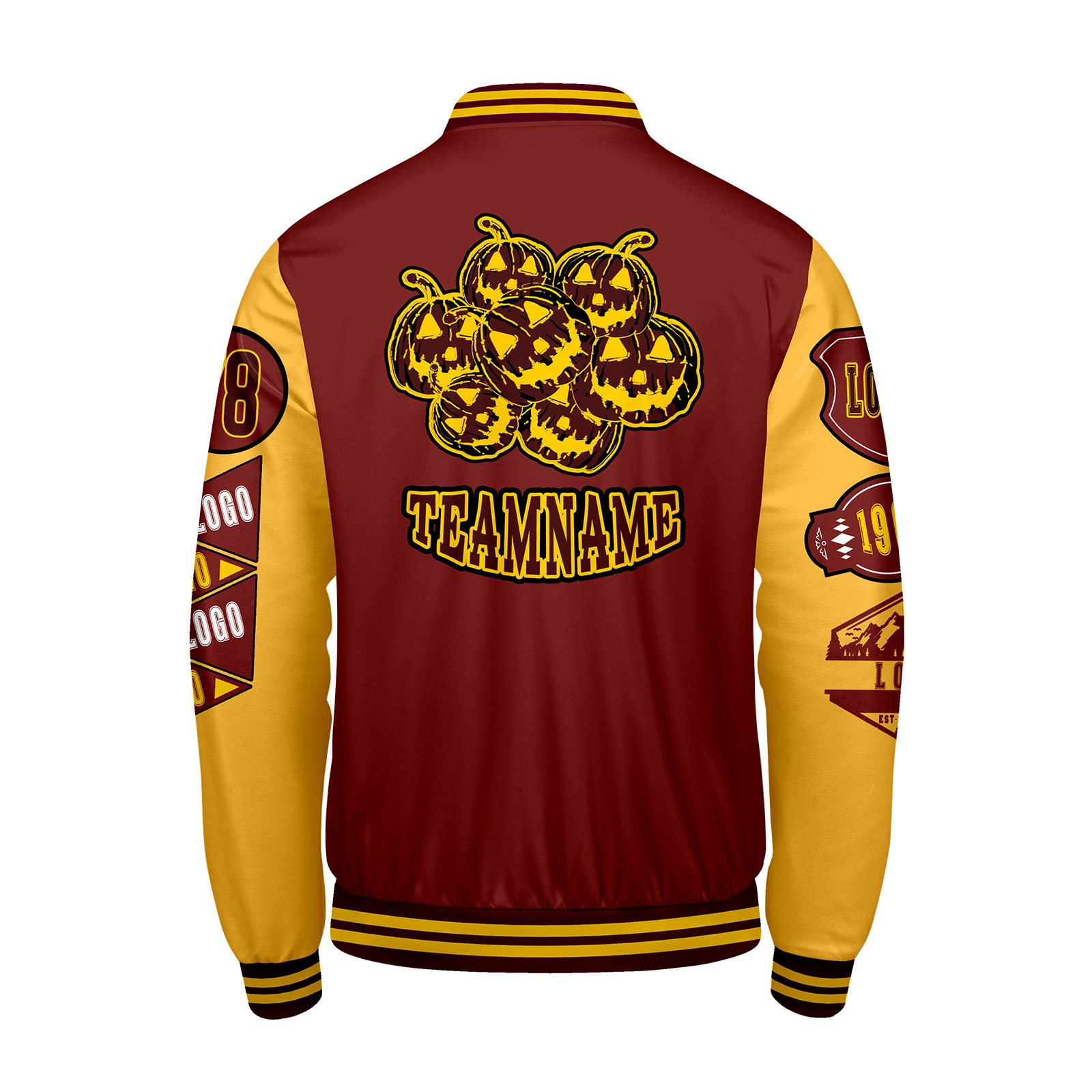 Maßgeschneiderte Burgund Gelb Letterman Varsity Jacket Individuelle Stickerei  Druck nach Ihrem Wunsch