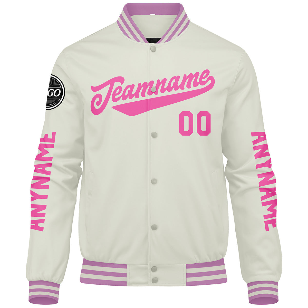Maßgeschneiderte Creme Letterman Varsity Jacket Individuelle Stickerei Druck nach Ihrem Wunsch