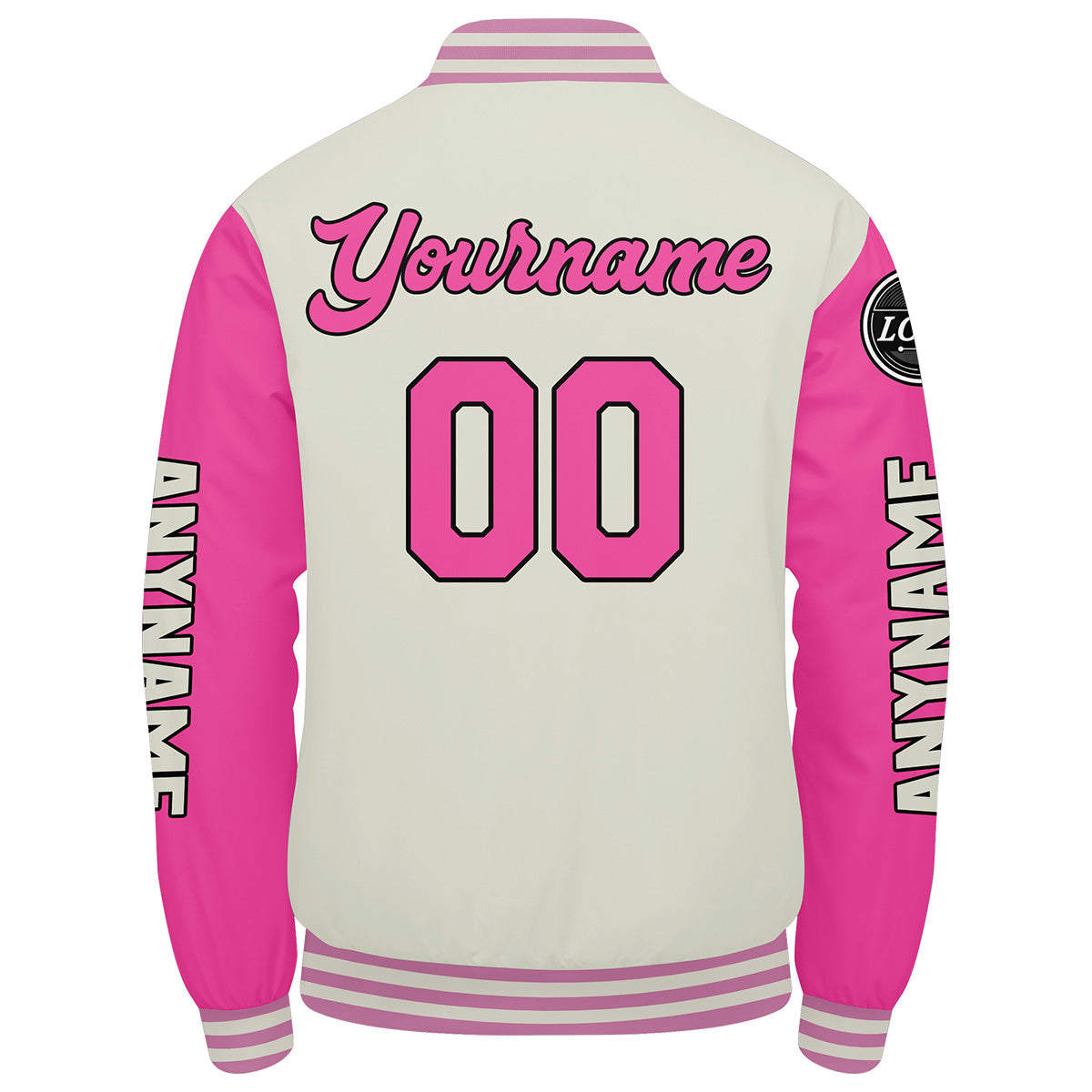 Maßgeschneiderte Creme Rosa Letterman Varsity Jacket Individuelle Stickerei Druck nach Ihrem Wunsch