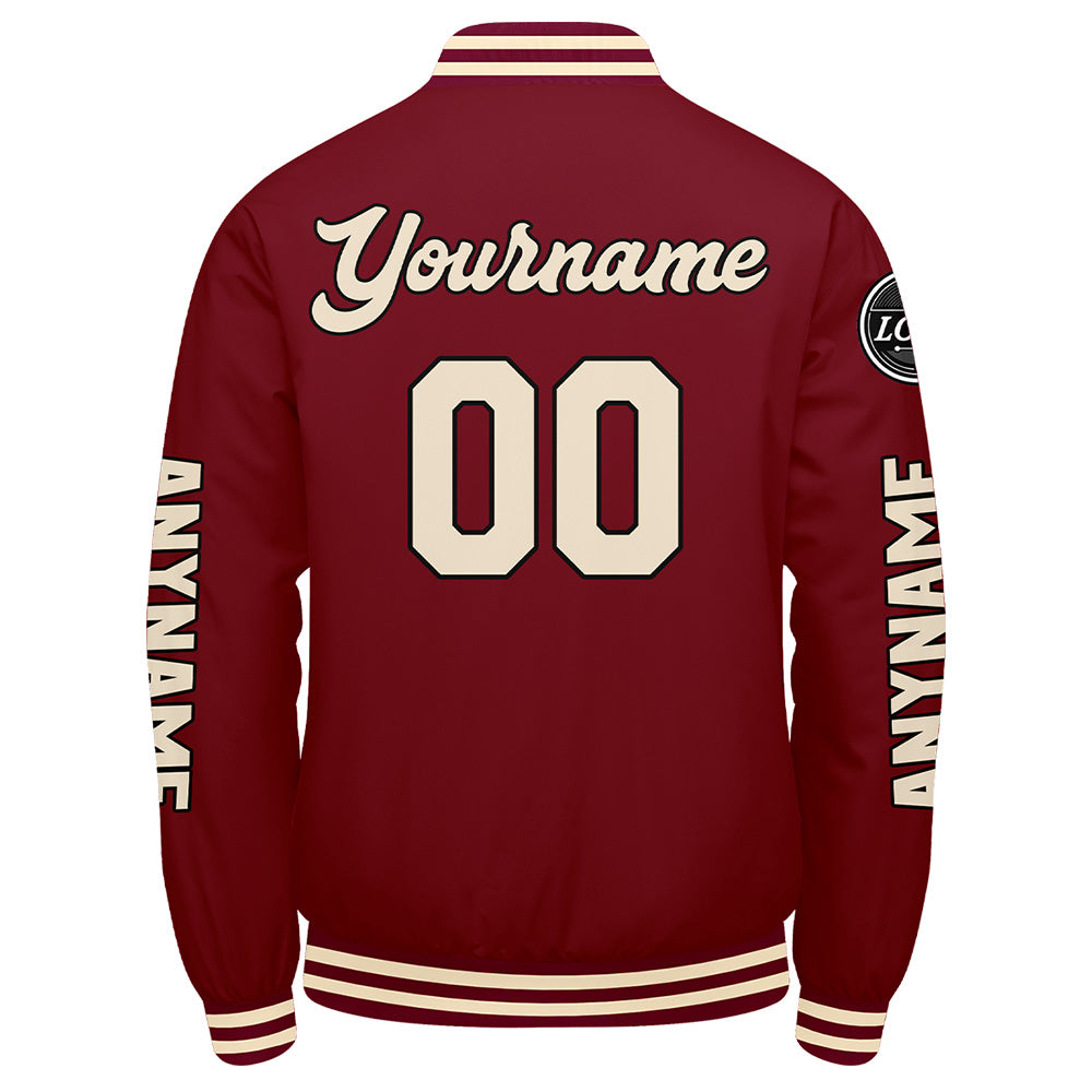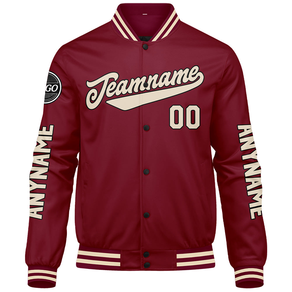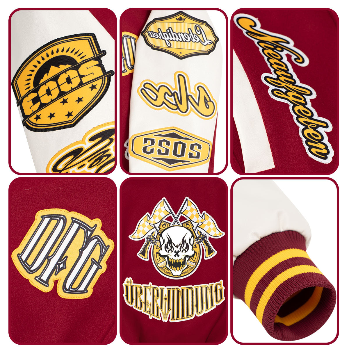 Maßgeschneiderte Crimson Creme Letterman Varsity Jacket Individuelle Stickerei Druck nach Ihrem Wunsch