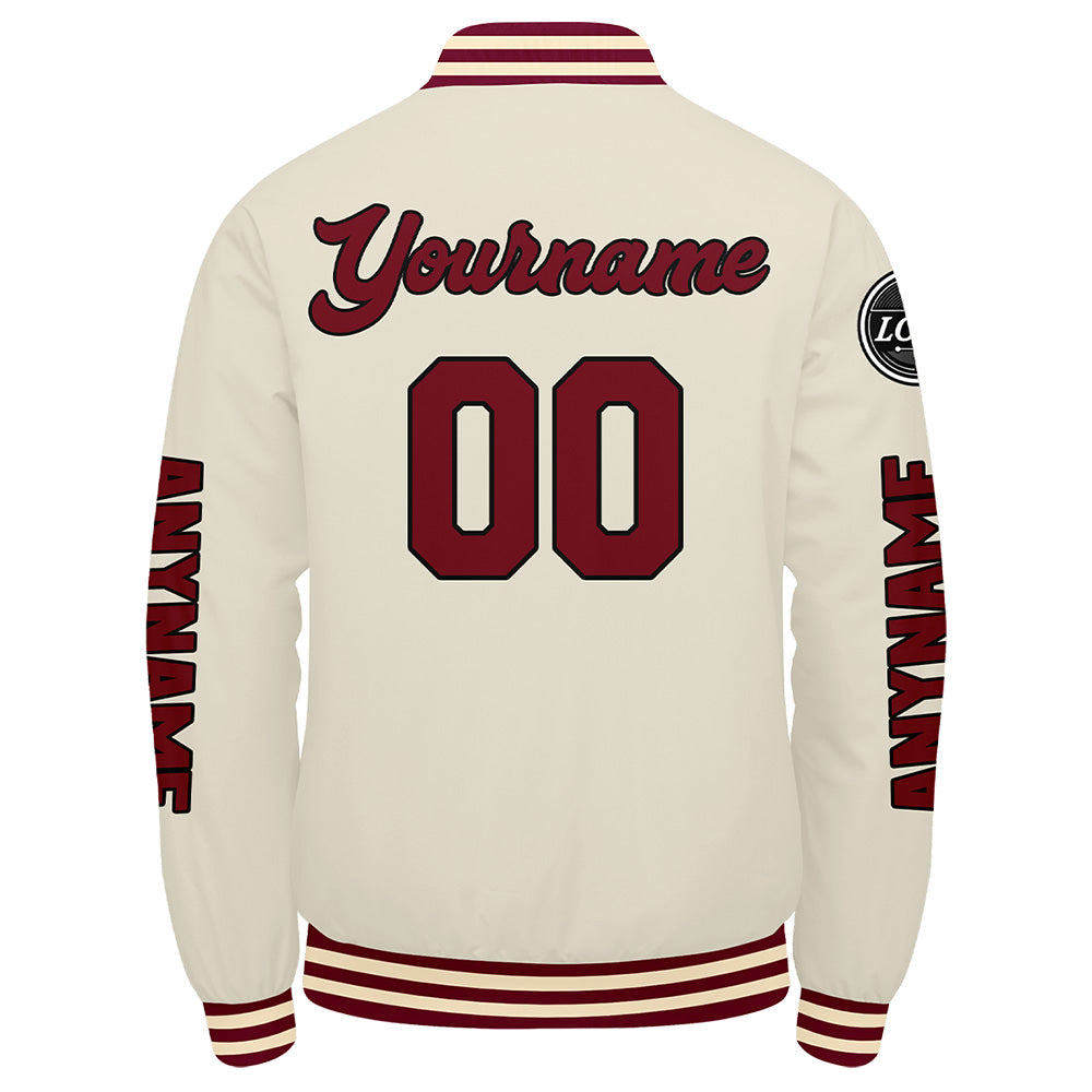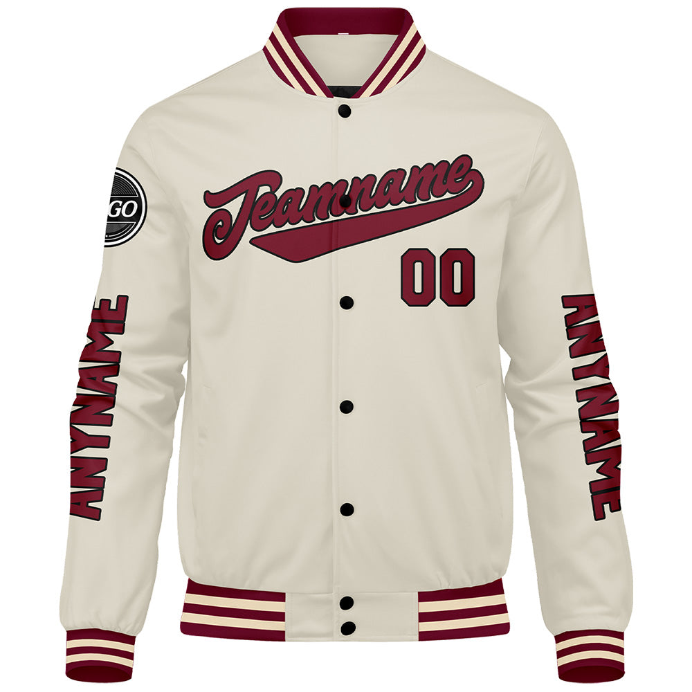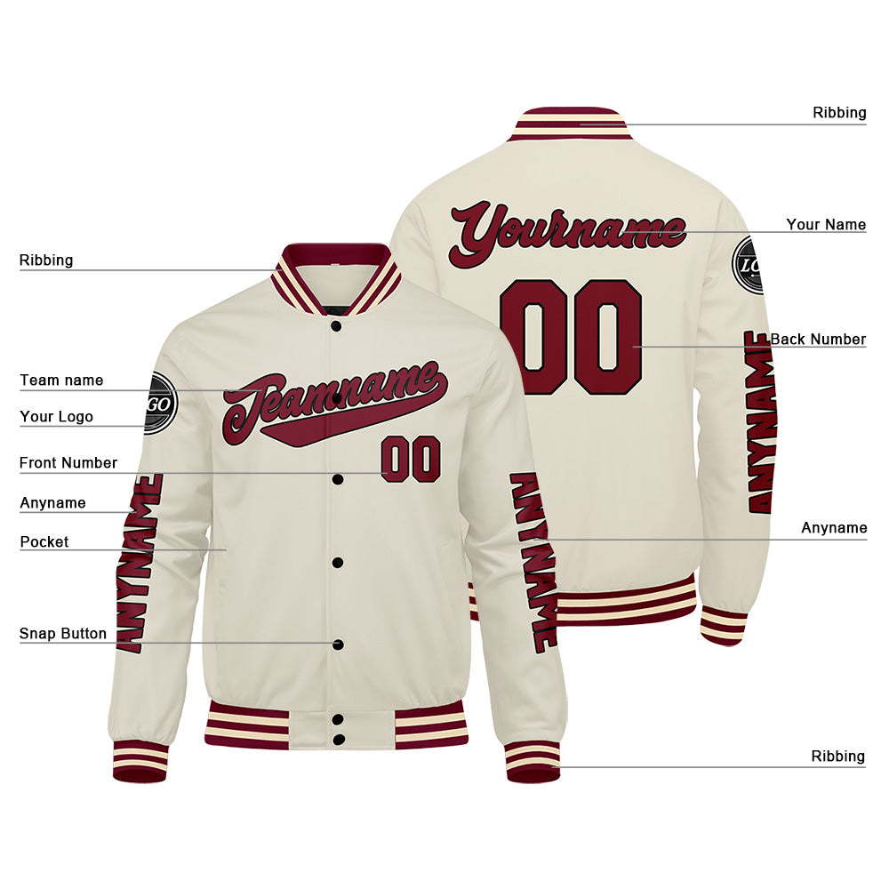Maßgeschneiderte Crimson Creme Letterman Varsity Jacket Individuelle Stickerei Druck nach Ihrem Wunsch