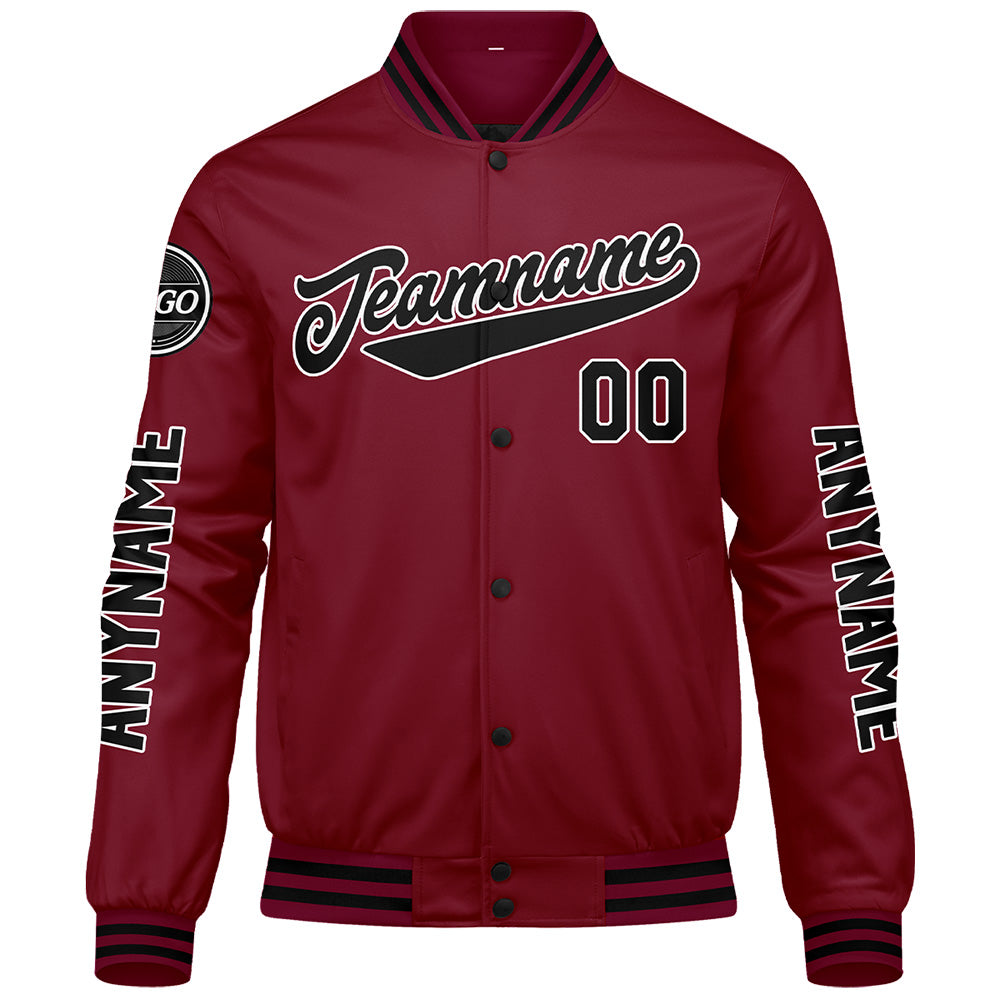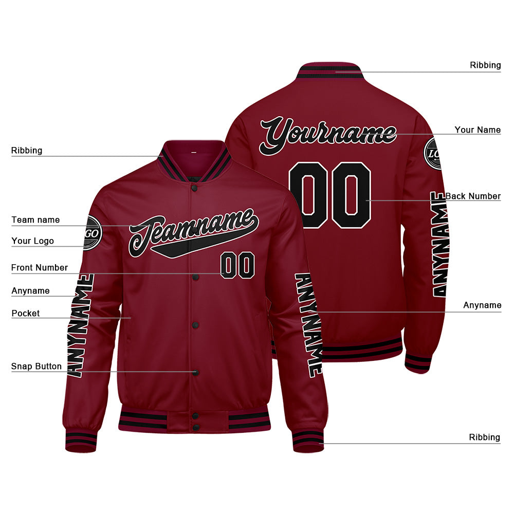 Maßgeschneiderte Crimson Schwarz Letterman Varsity Jacket Individuelle Stickerei Druck nach Ihrem Wunsch