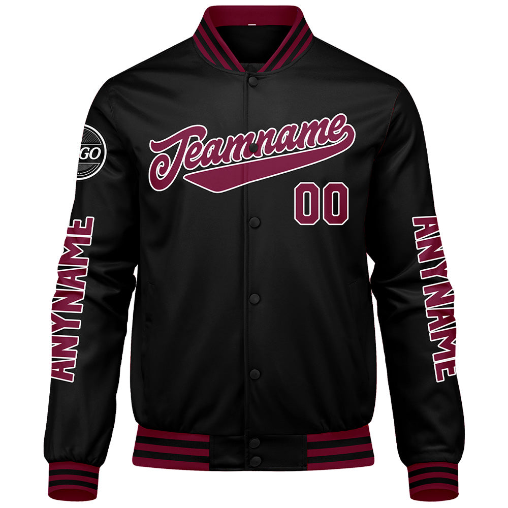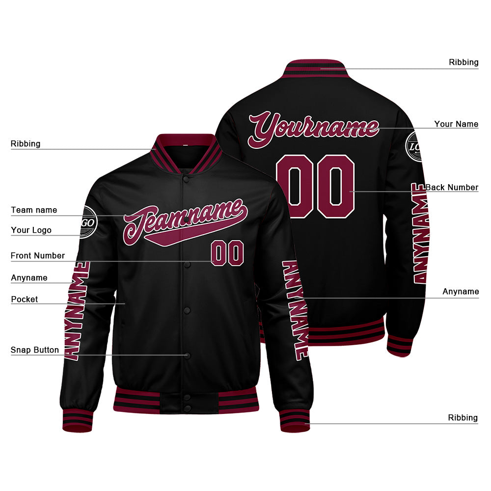 Maßgeschneiderte Crimson Schwarz Letterman Varsity Jacket Individuelle Stickerei Druck nach Ihrem Wunsch