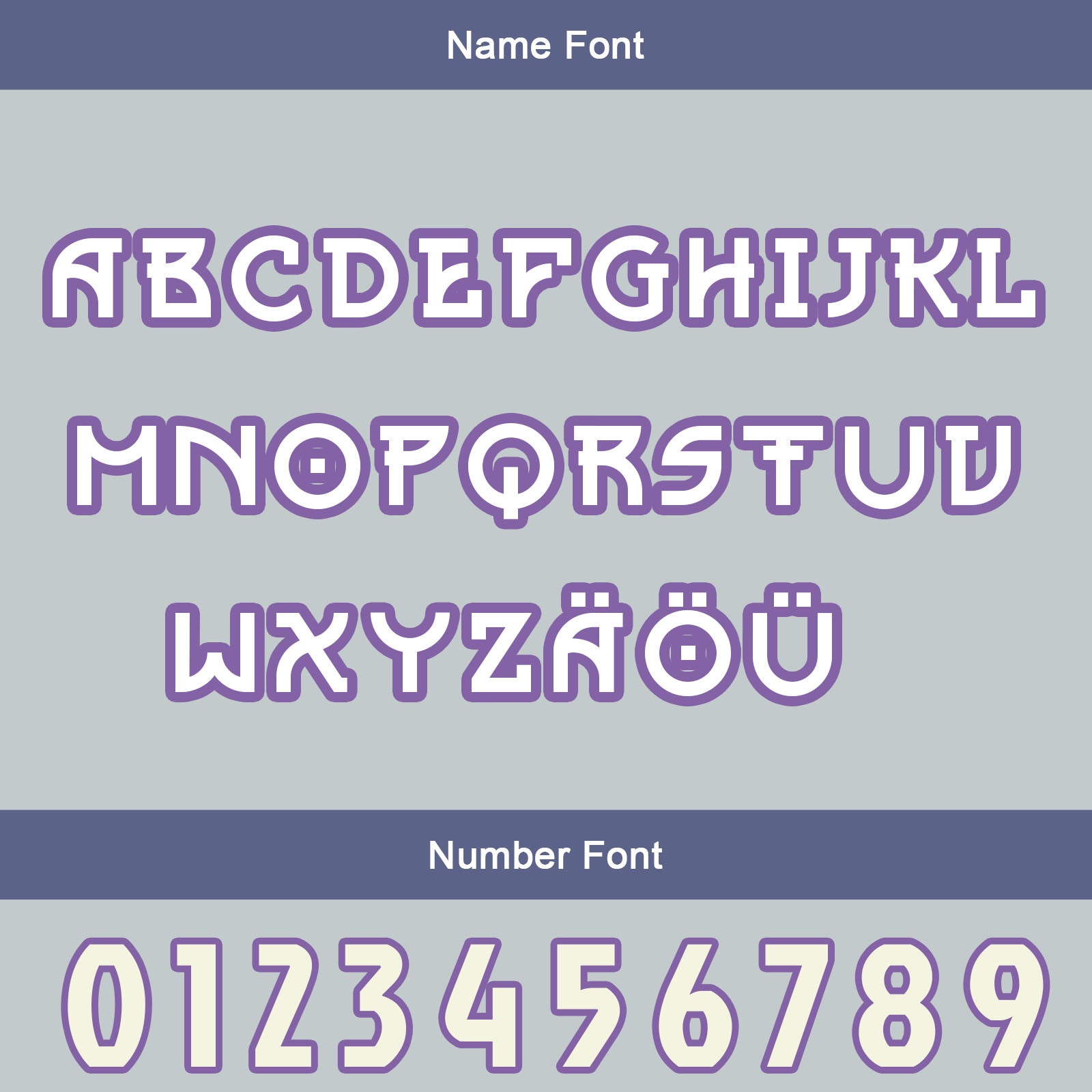 Maßgeschneiderte Grau Lila Letterman Varsity Jacket Individuelle Stickerei  Druck nach Ihrem Wunsch