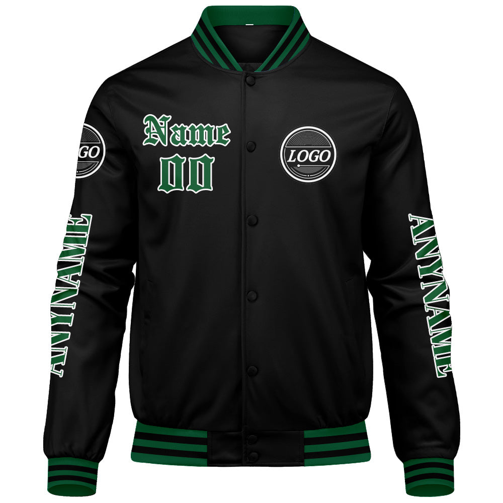 Maßgeschneiderte Grün Letterman Varsity Jacket Individuelle Stickerei Druck nach Ihrem Wunsch