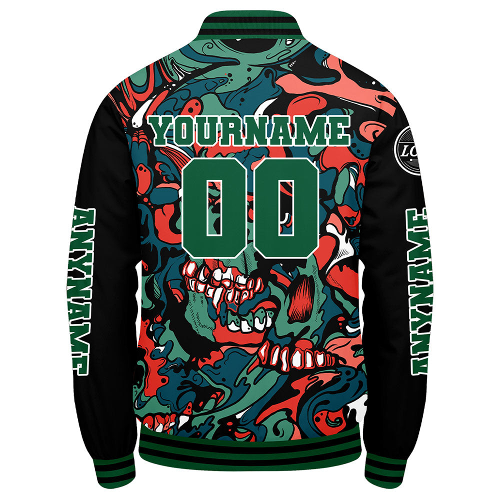 Maßgeschneiderte Grün Orange Letterman Varsity Jacket Individuelle Stickerei Druck nach Ihrem Wunsch