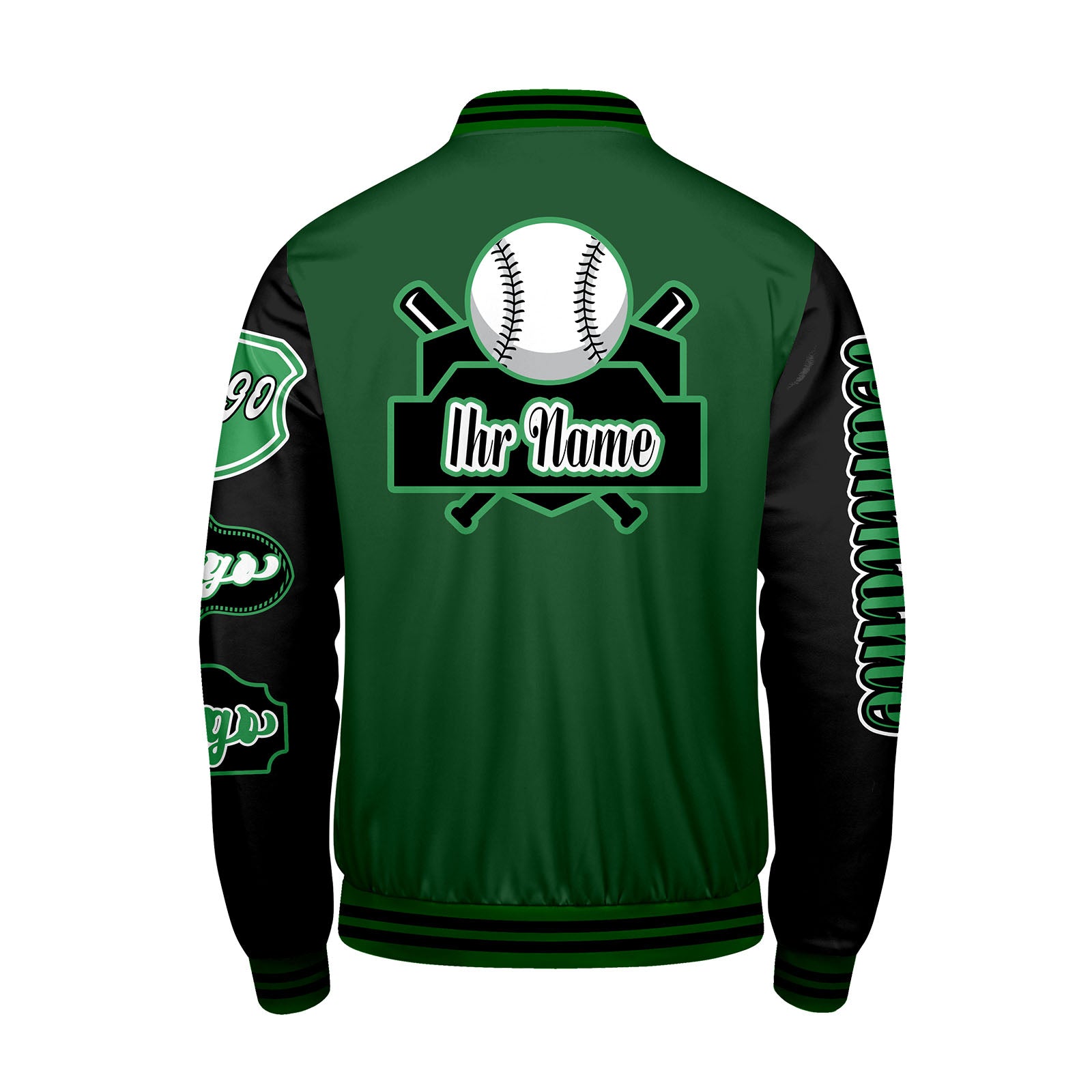 Maßgeschneiderte Grün Schwarz Letterman Varsity Jacket Individuelle Stickerei  Druck nach Ihrem Wunsch