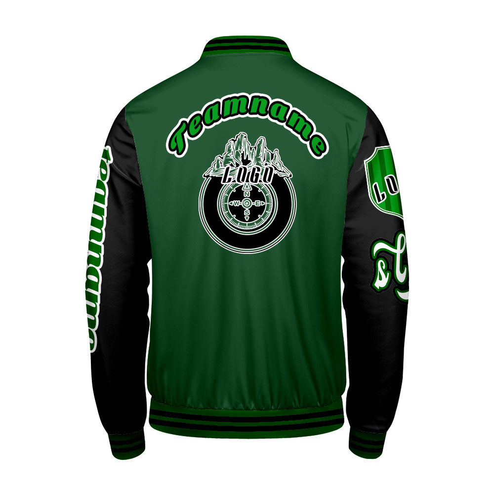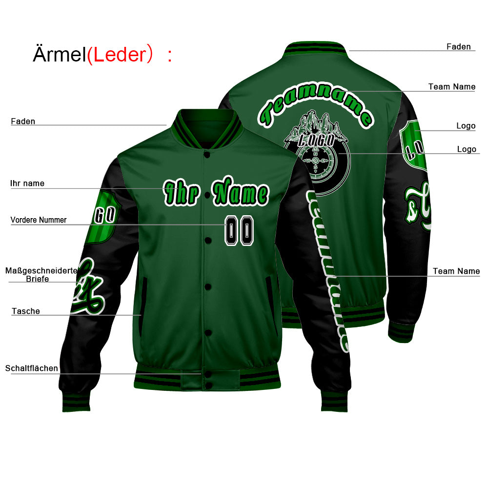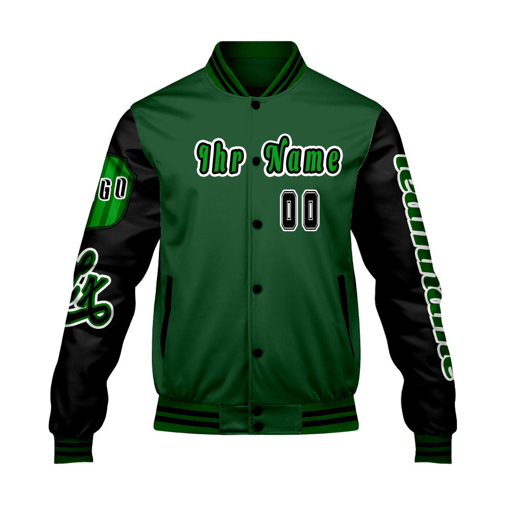 Maßgeschneiderte Grün Schwarz Letterman Varsity Jacket Individuelle Stickerei  Druck nach Ihrem Wunsch
