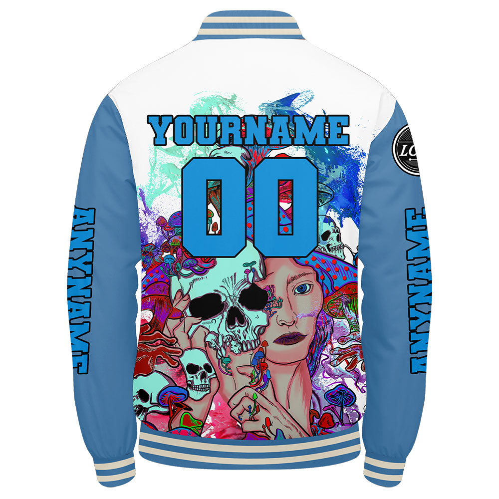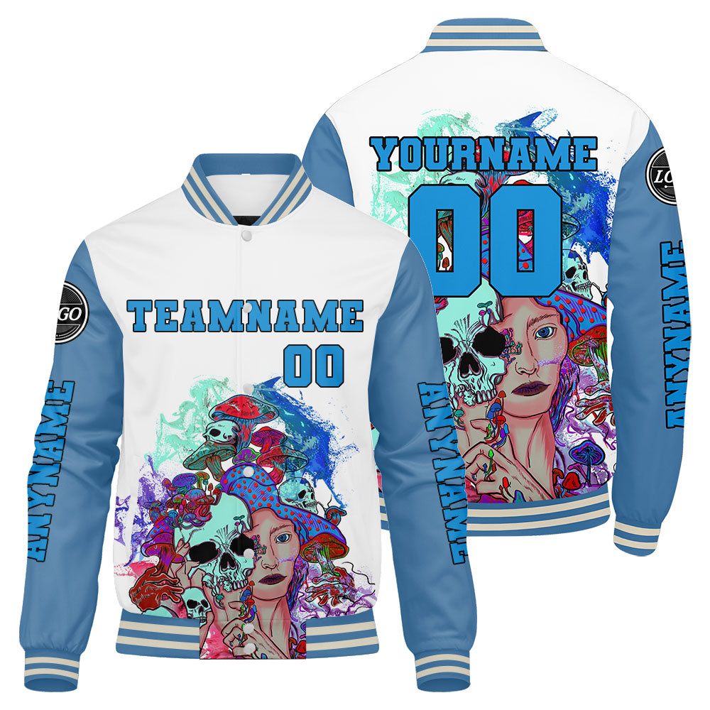 Maßgeschneiderte Hellblau Letterman Varsity Jacket Individuelle Stickerei Druck nach Ihrem Wunsch
