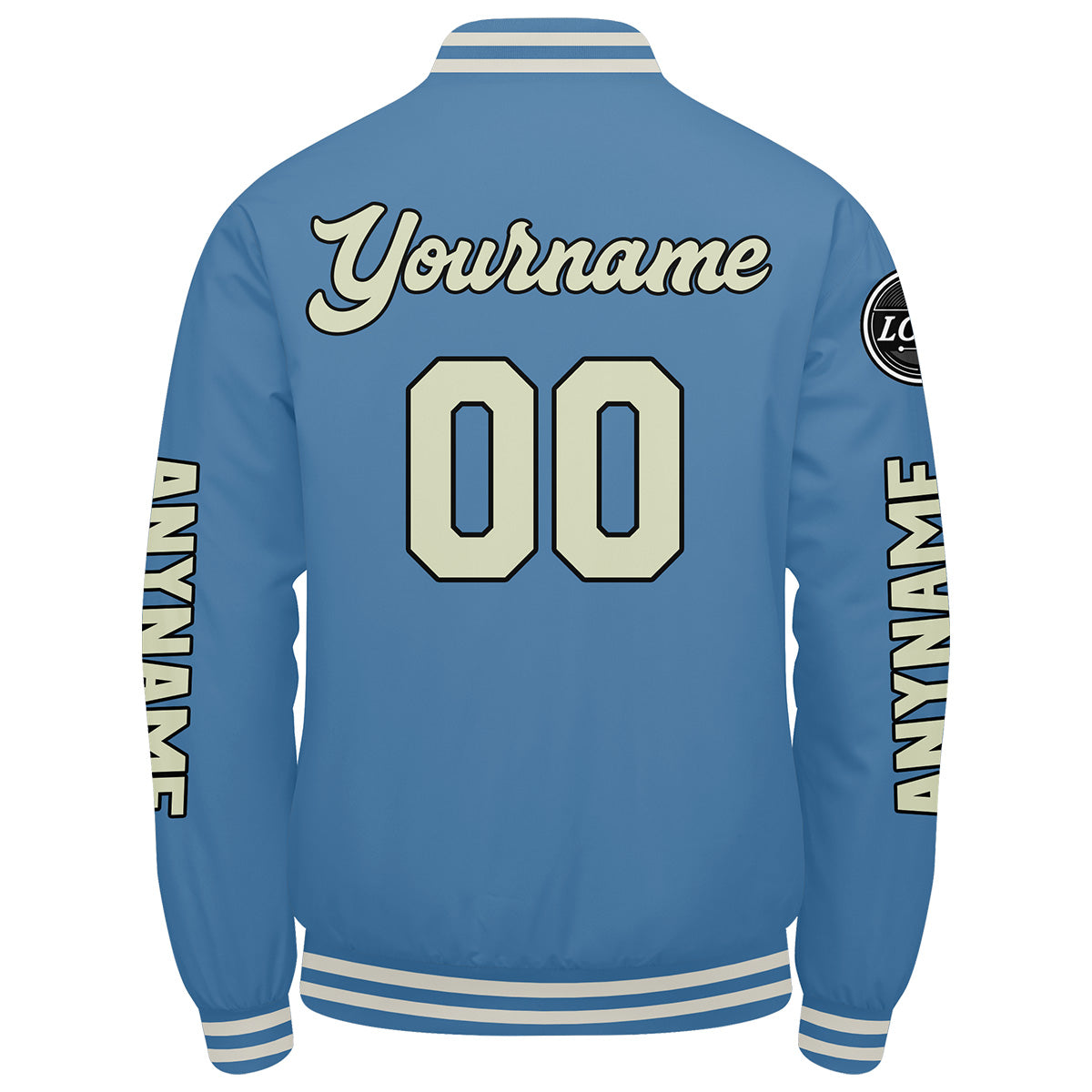 Maßgeschneiderte Hellblaue Creme Letterman Varsity Jacket Individuelle Stickerei Druck nach Ihrem Wunsch