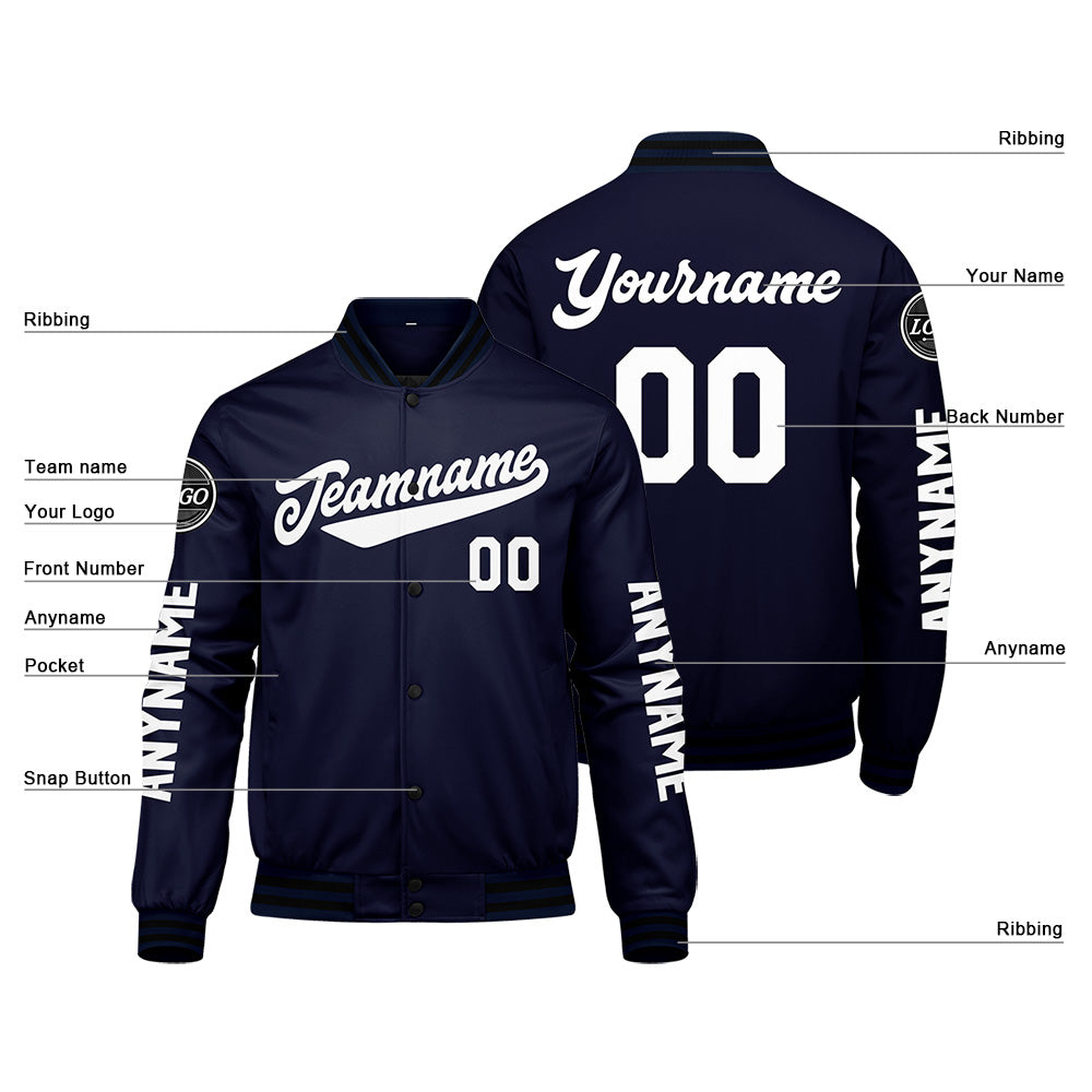 Maßgeschneiderte Marine Letterman Varsity Jacket Individuelle Stickerei Druck nach Ihrem Wunsch