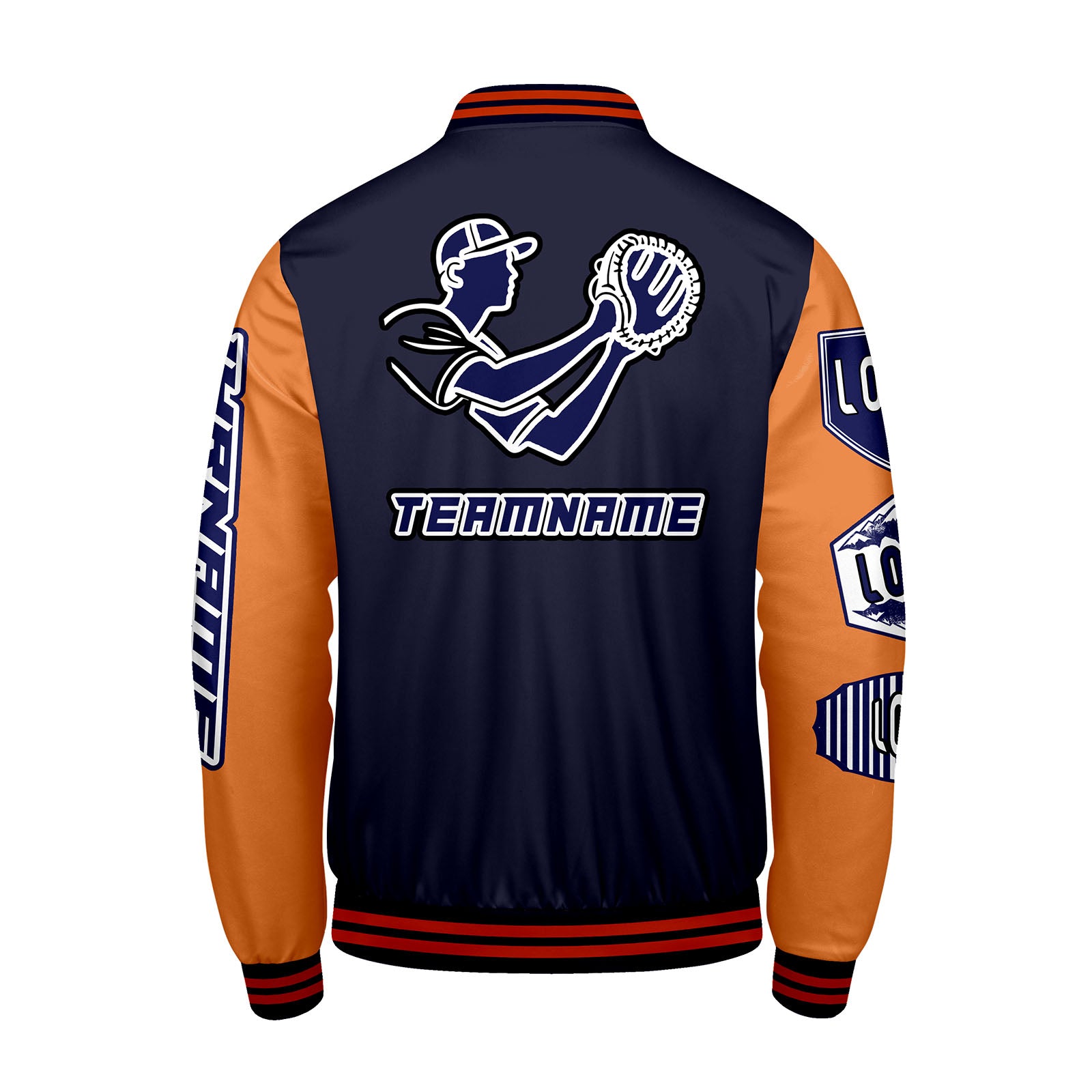 Maßgeschneiderte Marine Orange Letterman Varsity Jacket Individuelle Stickerei Druck nach Ihrem Wunsch