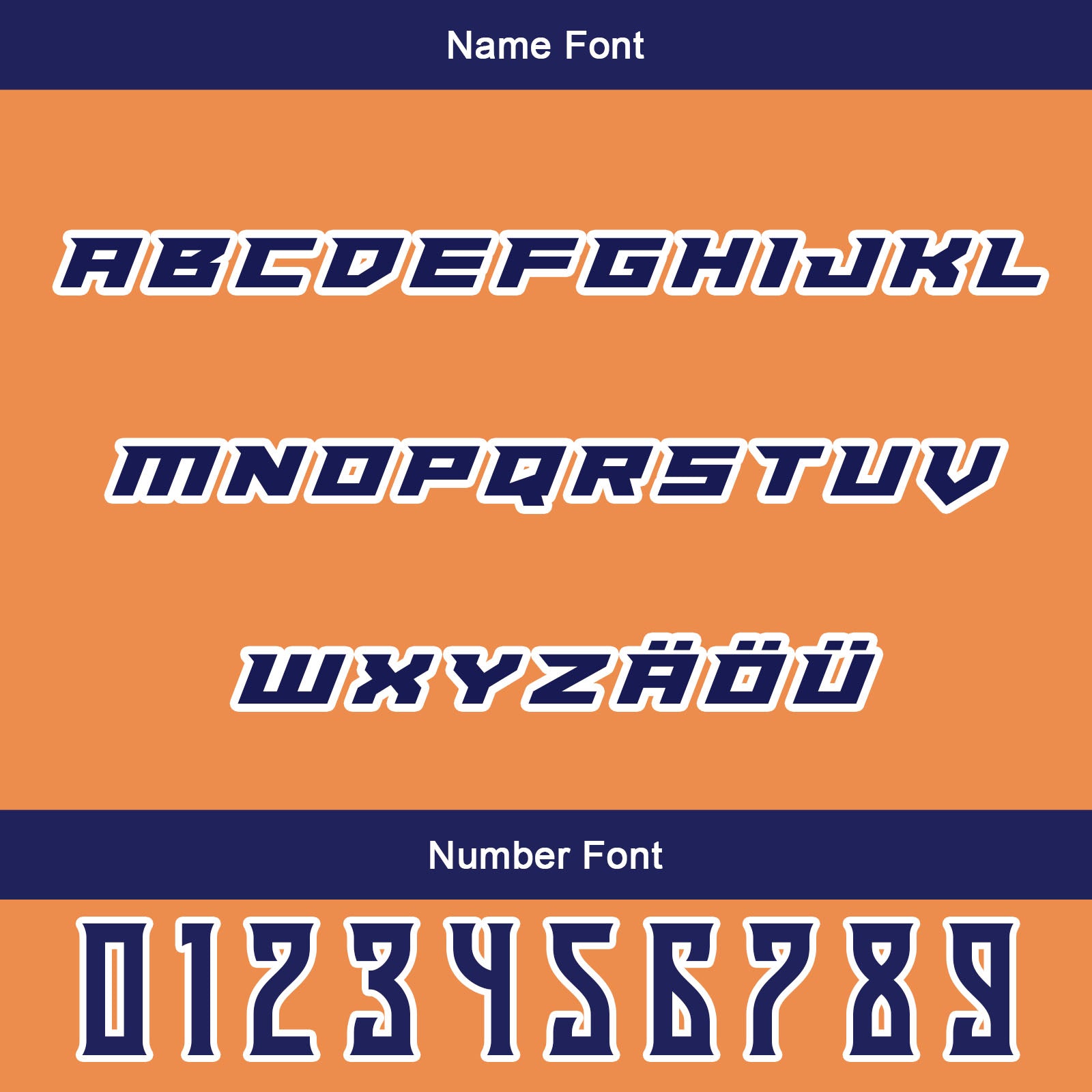 Maßgeschneiderte Marine Orange Letterman Varsity Jacket Individuelle Stickerei  Druck nach Ihrem Wunsch