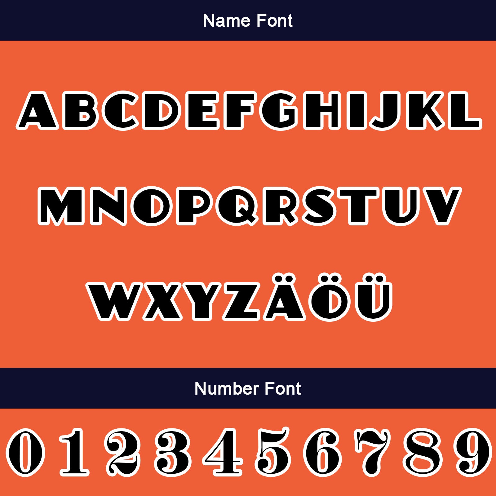 Maßgeschneiderte Marine Orange Letterman Varsity Jacket Individuelle Stickerei  Druck nach Ihrem Wunsch