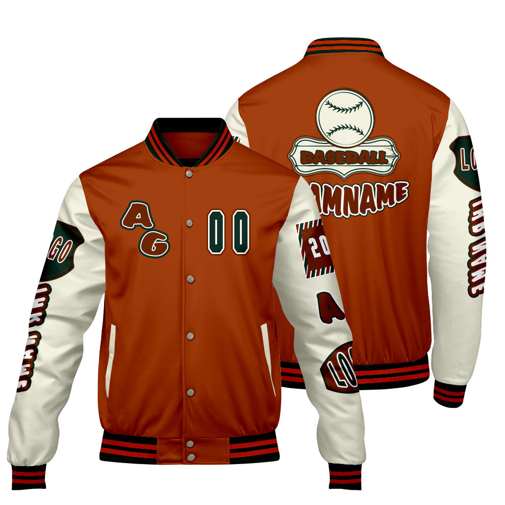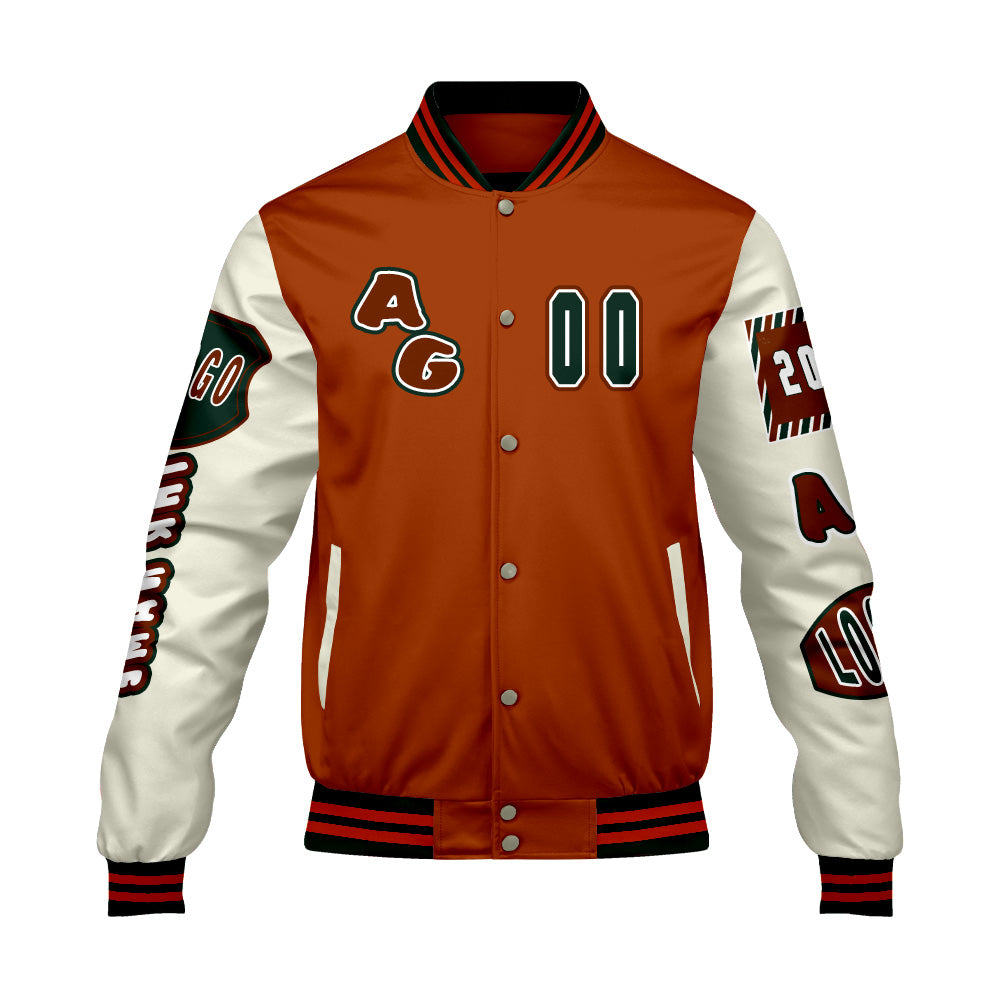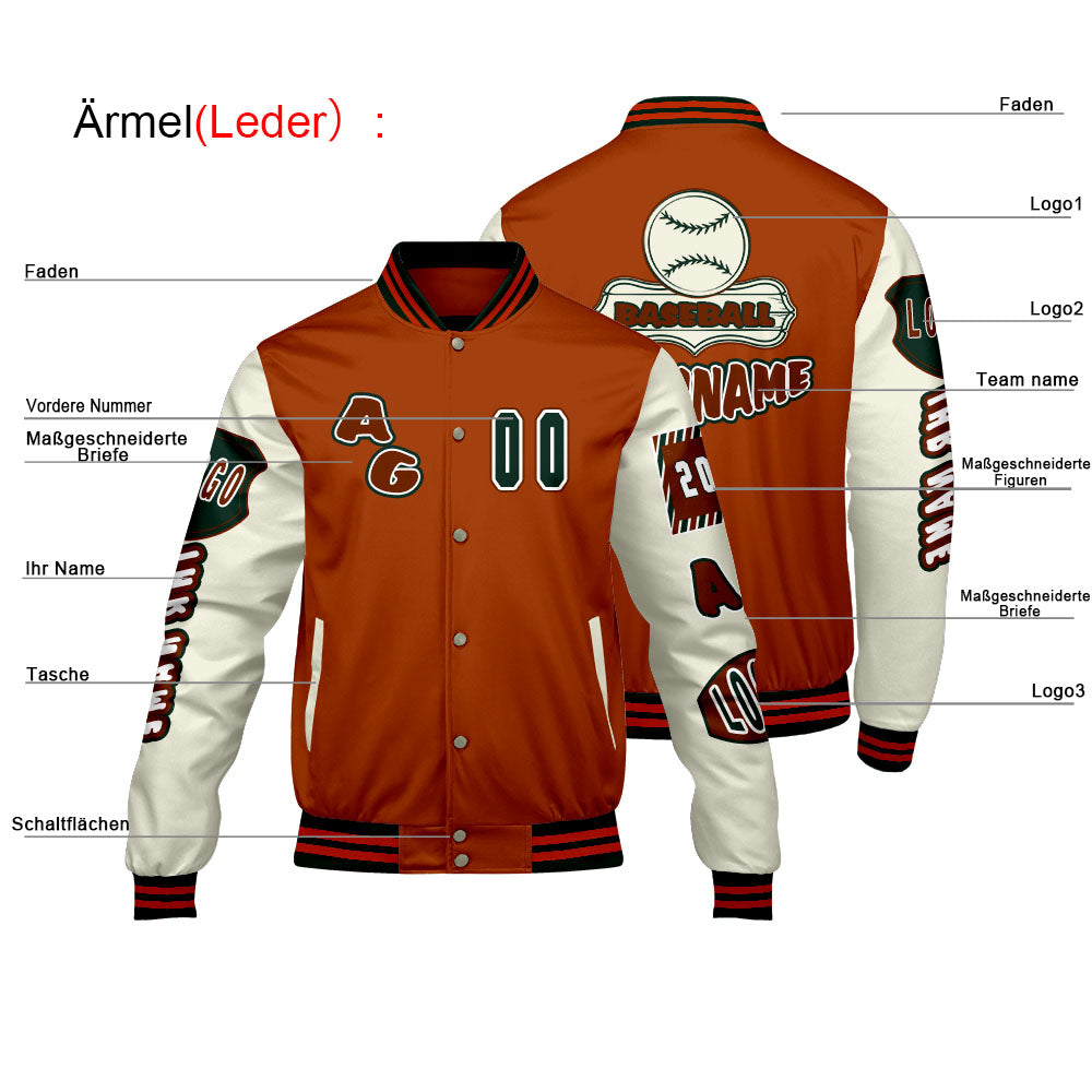 Maßgeschneiderte Orange Grün Letterman Varsity Jacket Individuelle Stickerei  Druck nach Ihrem Wunsch