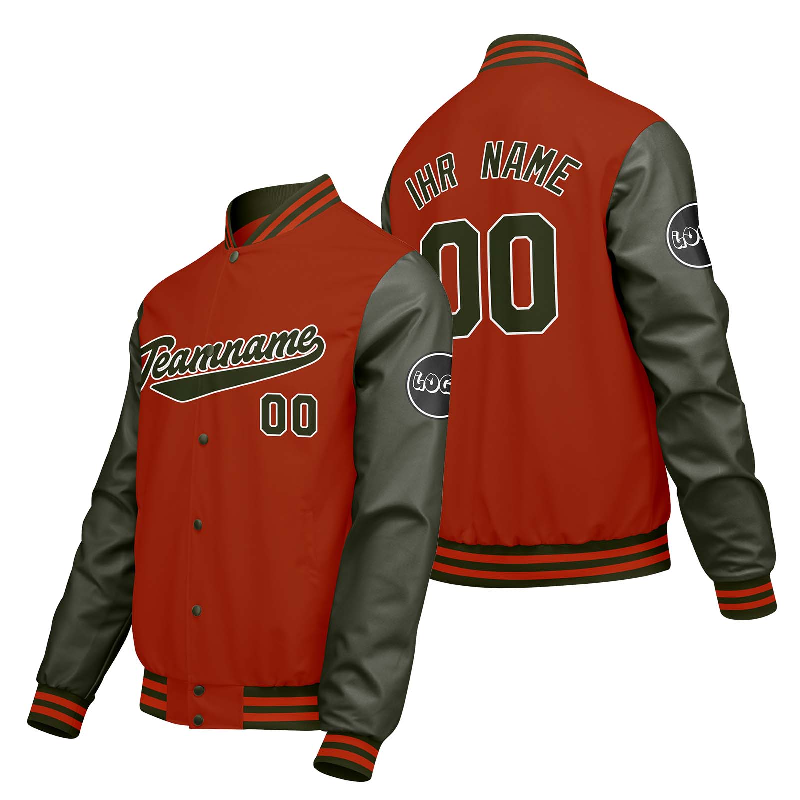 Maßgeschneiderte Orange Grün Letterman Varsity Jacket Individuelle Stickerei Druck nach Ihrem Wunsch
