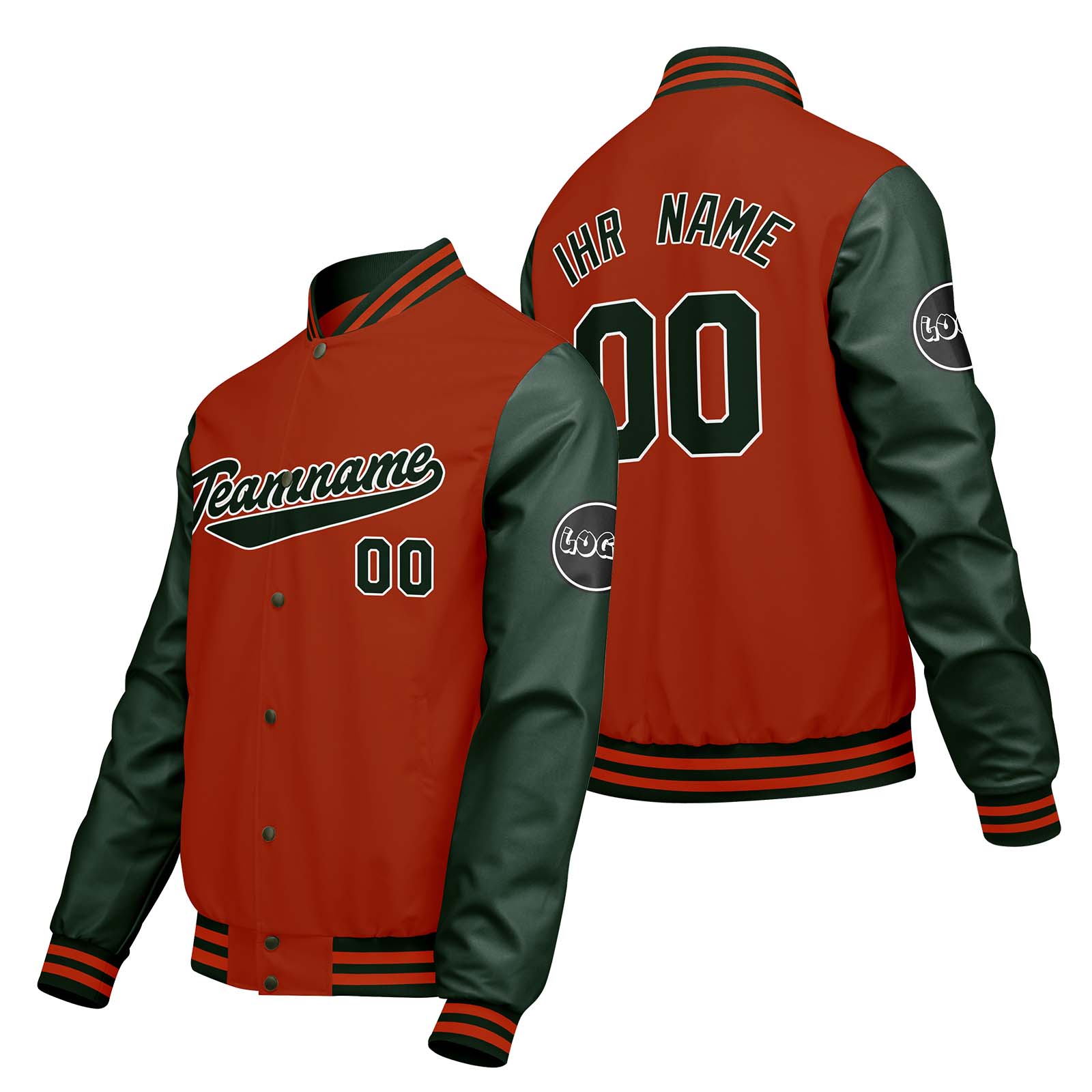Maßgeschneiderte Orange Grün Letterman Varsity Jacket Individuelle Stickerei Druck nach Ihrem Wunsch
