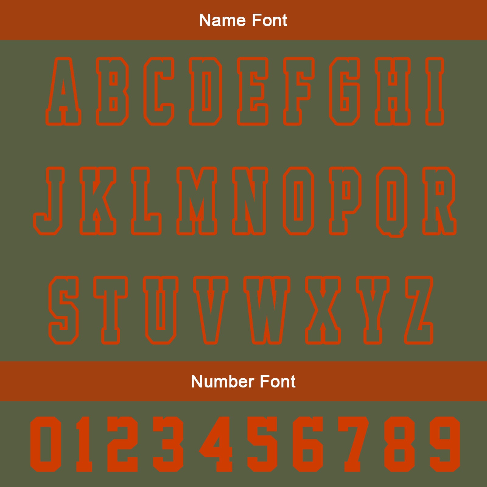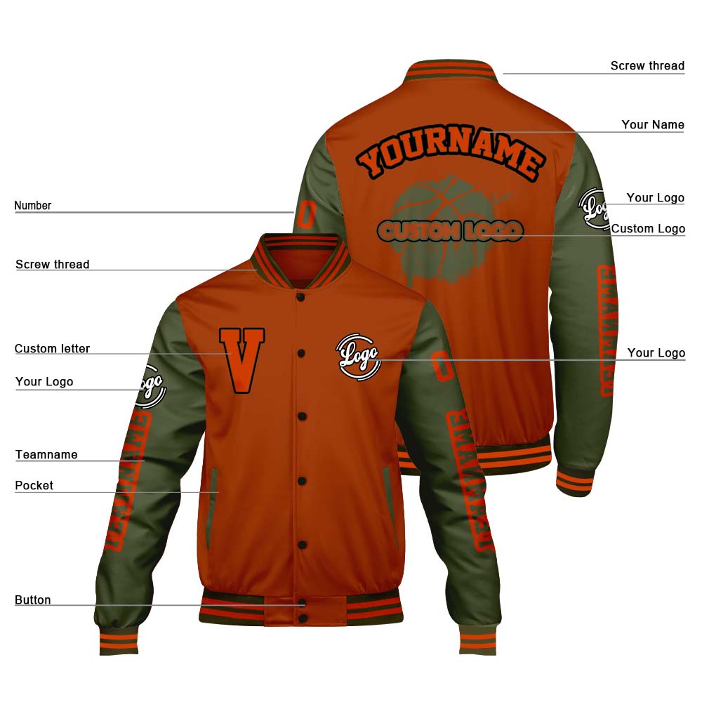 Maßgeschneiderte Orange Olivengrün Letterman Varsity Jacket Individuelle Stickerei Druck nach Ihrem Wunsch